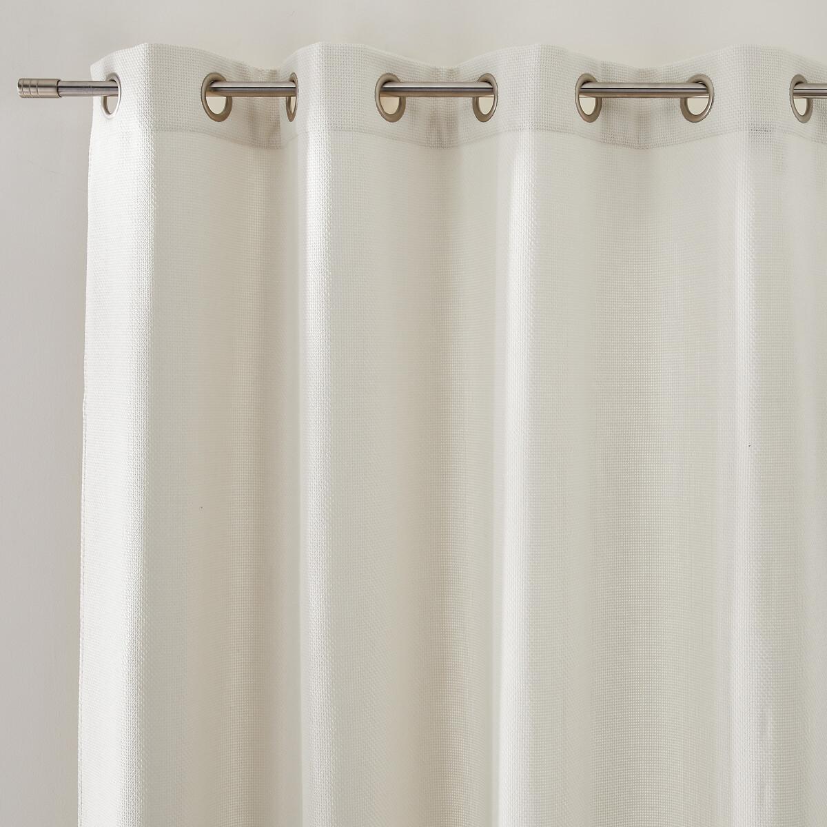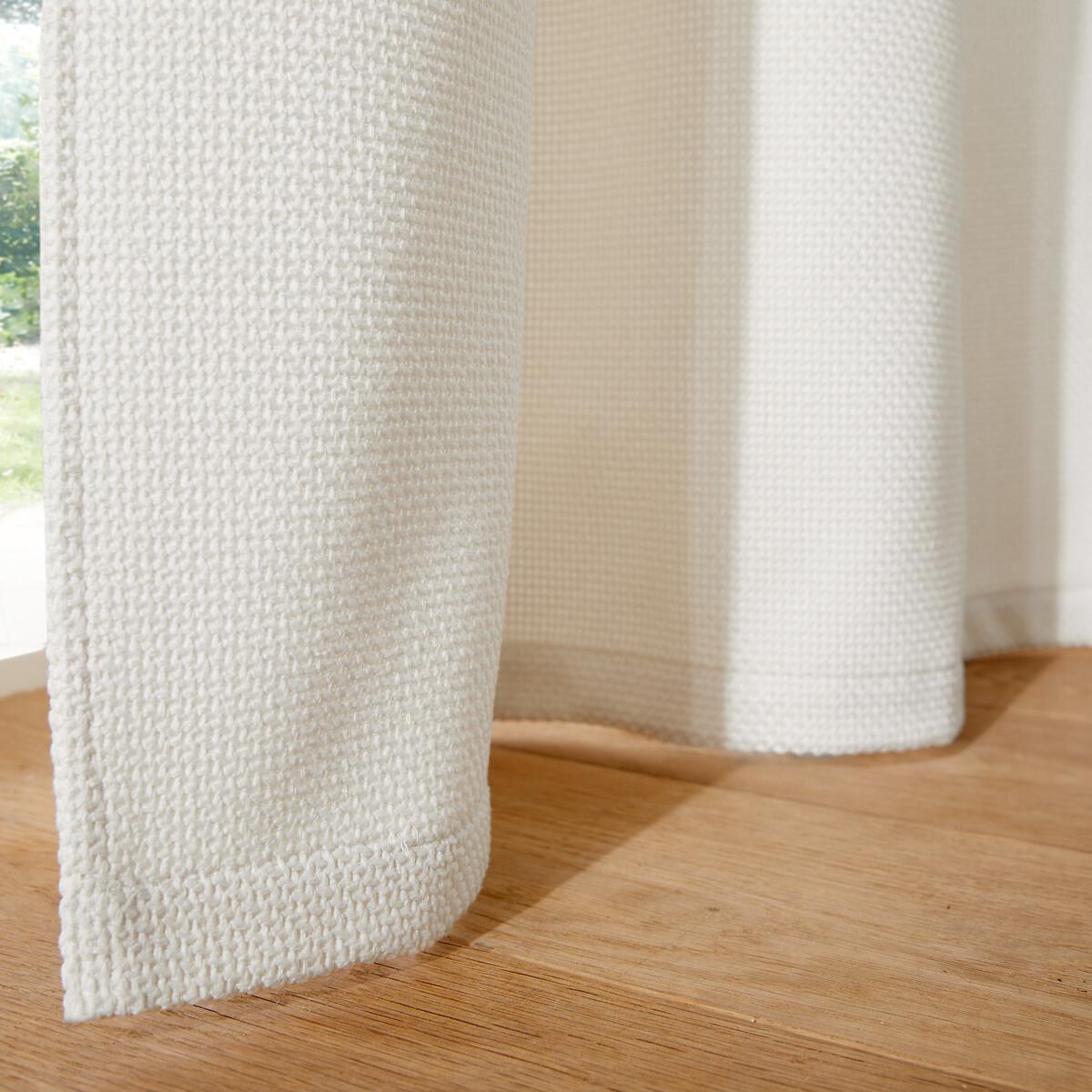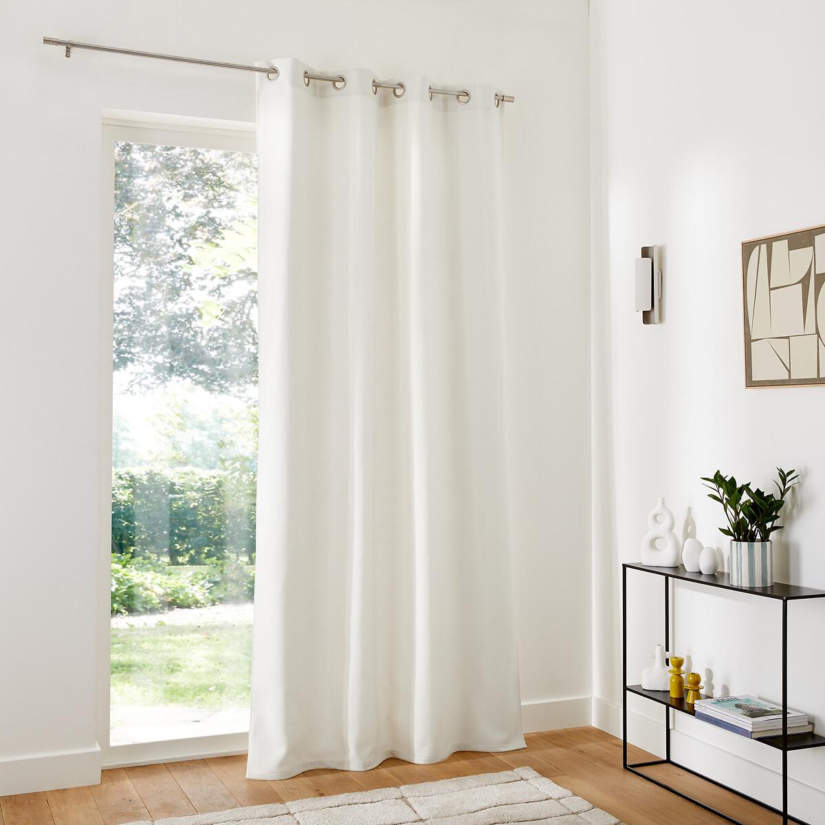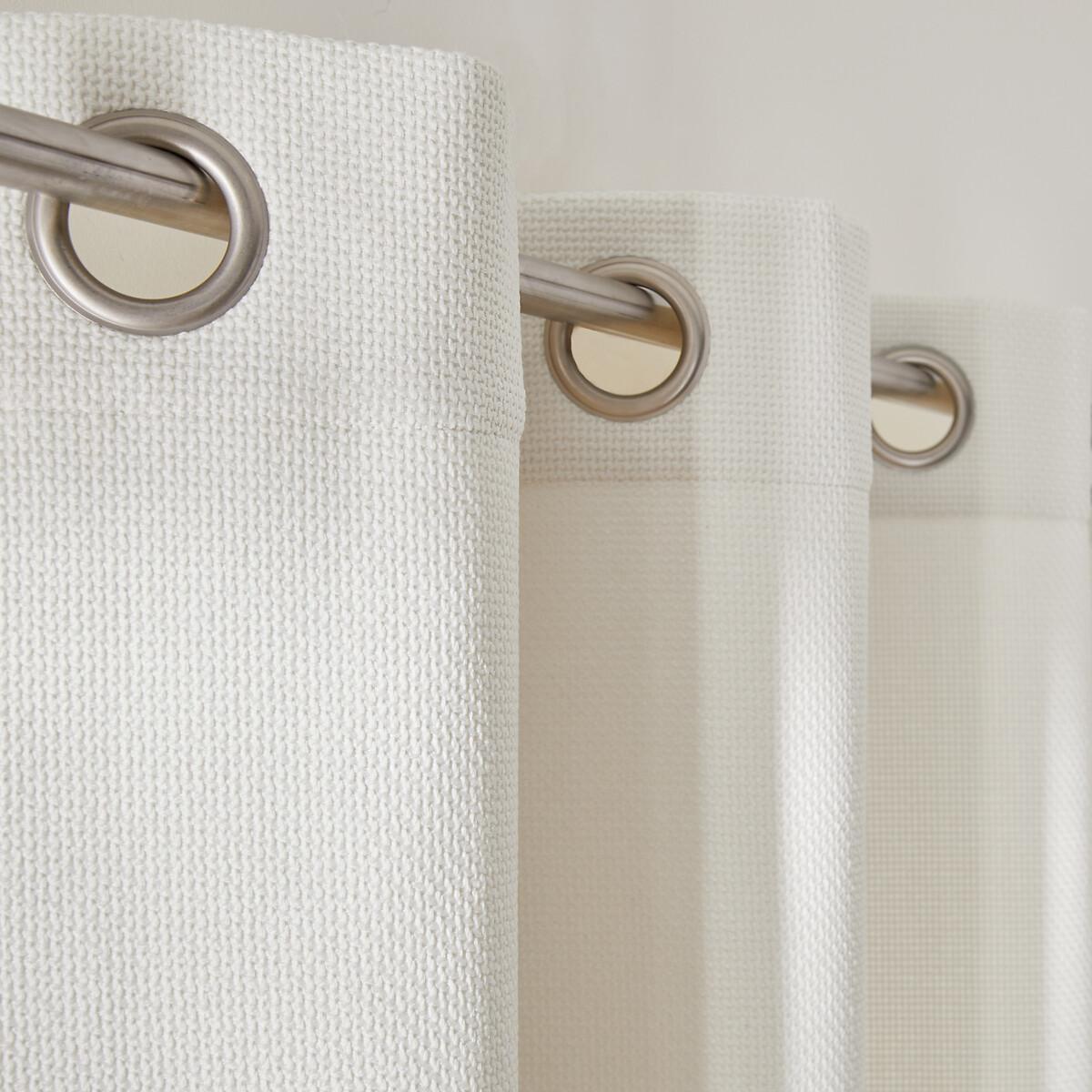 The Montego thermal curtain, made from polyester with a woven effect, helps maintain the temperature of a room by keeping out the cold thanks to its fleece lining. The eyelets guarantee nice regular waves and ensure the fabric falls beautifully. They slide perfectly on the rod, making it easy to open and close the curtain. Product Details • Thermal • 100% polyester (260g/m²) • Basket weave textured fabric • 100% polyester fleece lining • Top finish : eyelets in gunmetal grey colour • Inner diameter of eyelets: 4cm/1.5" • Finished bottom : Plain hemmed edging. To help you in the choice and maintenance of your curtains, do not hesitate to consult our guide by typing "Curtain Buying Guide" in our search engine on the site. Care Advice • Machine washable at 30°C • Maximum shrinkage after washing : 3% approx. Fabrics made from natural fibres may shrink in the first wash. Always wash your curtains before making any alterations. • Do not tumble dry • If you don't need to iron them (linen curtains, Voile Panel...), let the curtains air dry by hanging them immediately after washing, making sure to spread them out to their full width. • If you want to iron your curtains, we recommend using a low-temperature steam iron or a steamer. Dimensions • Drop 180 x Width 140cm • Drop 220 x Width 140cm • Drop 260 x Width 140cm • Drop 300 x Width 140cm • Drop 350 x Width 140cm • OEKO-TEX® Standard 100. Standard 100 certification by OEKO-TEX® tests textile products for harmful substances via an independent, international label.