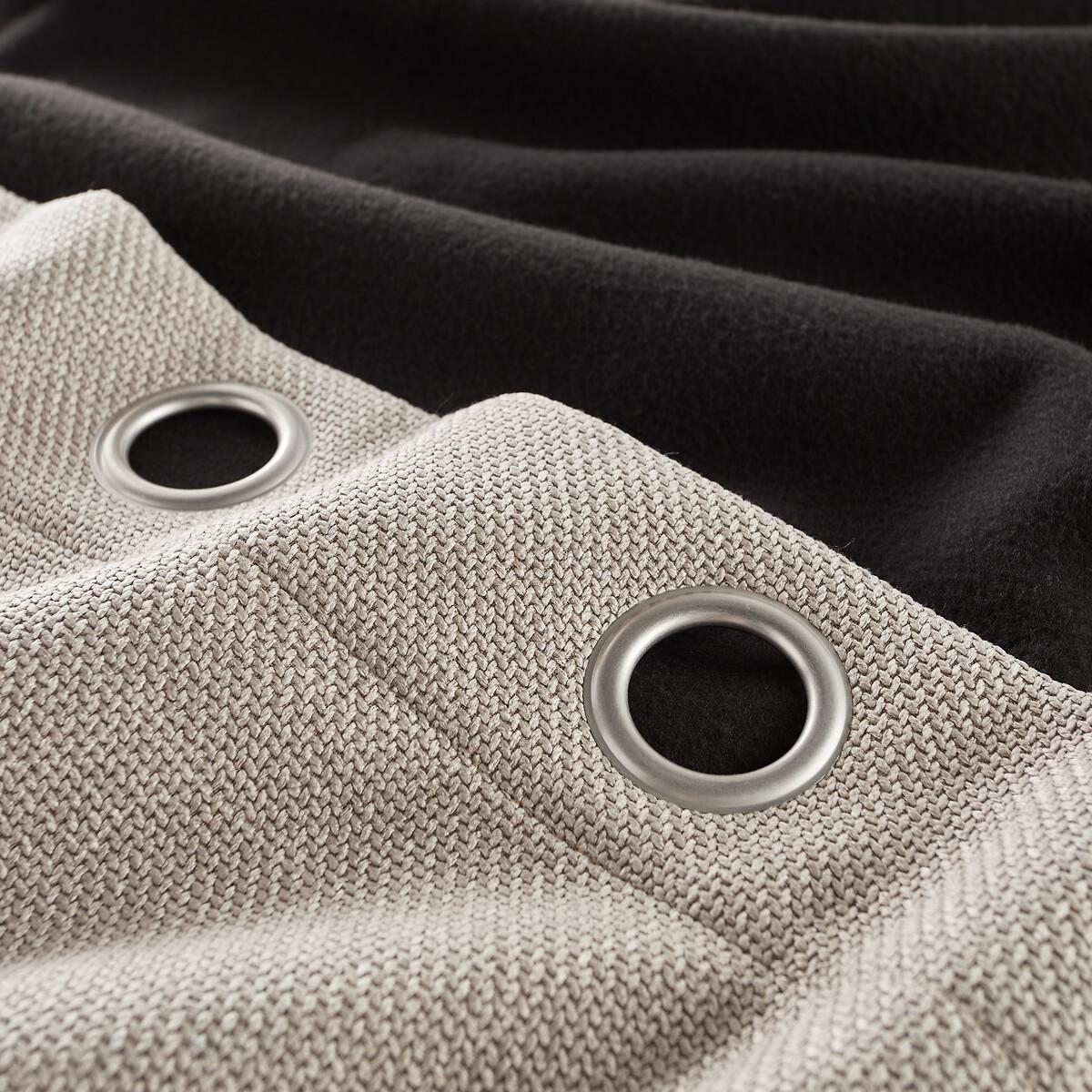 The Montego thermal curtain, made from polyester with a woven effect, helps maintain the temperature of a room by keeping out the cold thanks to its fleece lining. The eyelets guarantee nice regular waves and ensure the fabric falls beautifully. They slide perfectly on the rod, making it easy to open and close the curtain. Product Details • Thermal • 100% polyester (260g/m²) • Basket weave textured fabric • 100% polyester fleece lining • Top finish : eyelets in gunmetal grey colour • Inner diameter of eyelets: 4cm/1.5" • Finished bottom : Plain hemmed edging. To help you in the choice and maintenance of your curtains, do not hesitate to consult our guide by typing "Curtain Buying Guide" in our search engine on the site. Care Advice • Machine washable at 30°C • Maximum shrinkage after washing : 3% approx. Fabrics made from natural fibres may shrink in the first wash. Always wash your curtains before making any alterations. • Do not tumble dry • If you don't need to iron them (linen curtains, Voile Panel...), let the curtains air dry by hanging them immediately after washing, making sure to spread them out to their full width. • If you want to iron your curtains, we recommend using a low-temperature steam iron or a steamer. Dimensions • Drop 180 x Width 140cm • Drop 220 x Width 140cm • Drop 260 x Width 140cm • Drop 350 x Width 140cm • OEKO-TEX® Standard 100. Standard 100 certification by OEKO-TEX® tests textile products for harmful substances via an independent, international label.