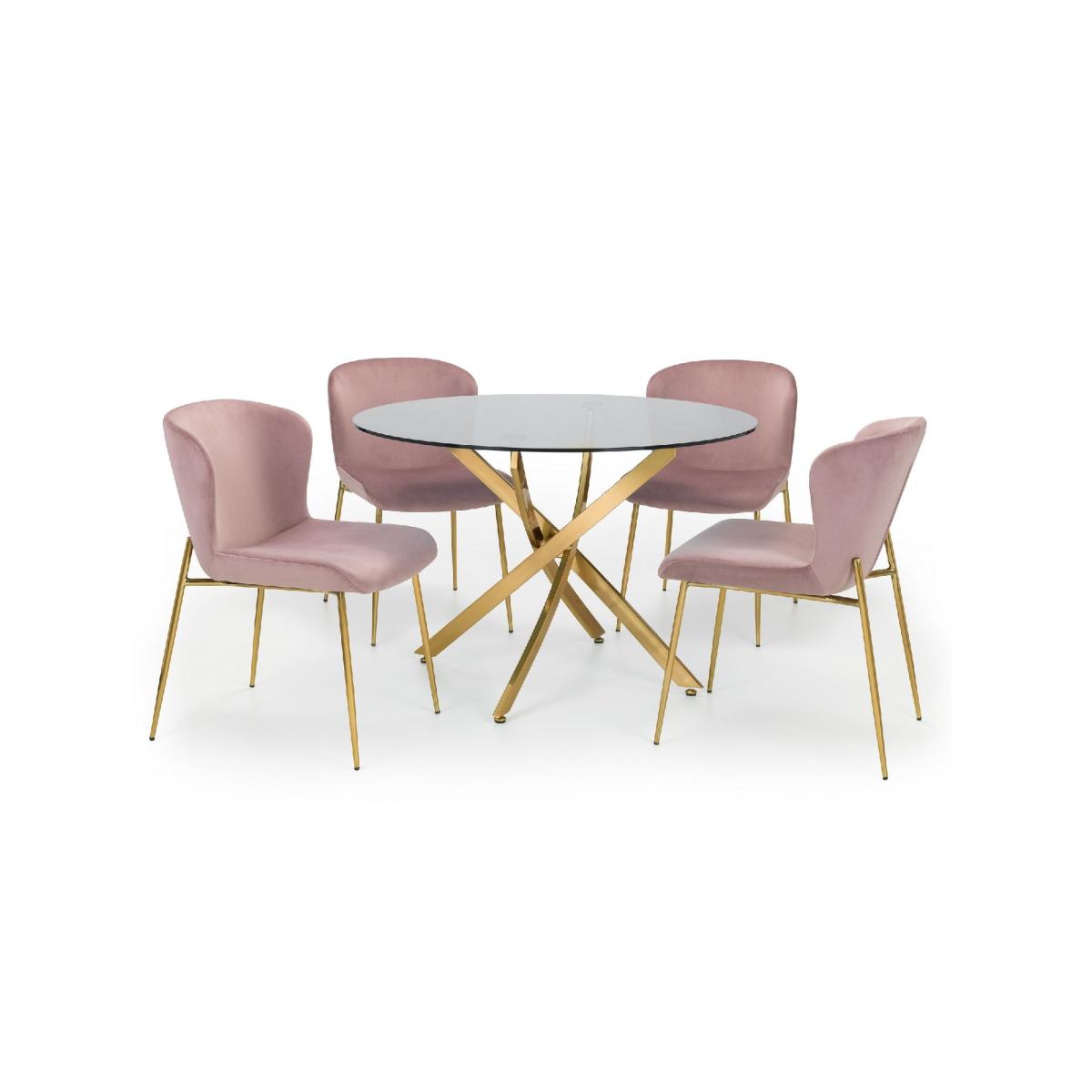 Montero Round Glass Dining Set with 4 Harper Chairs Pink