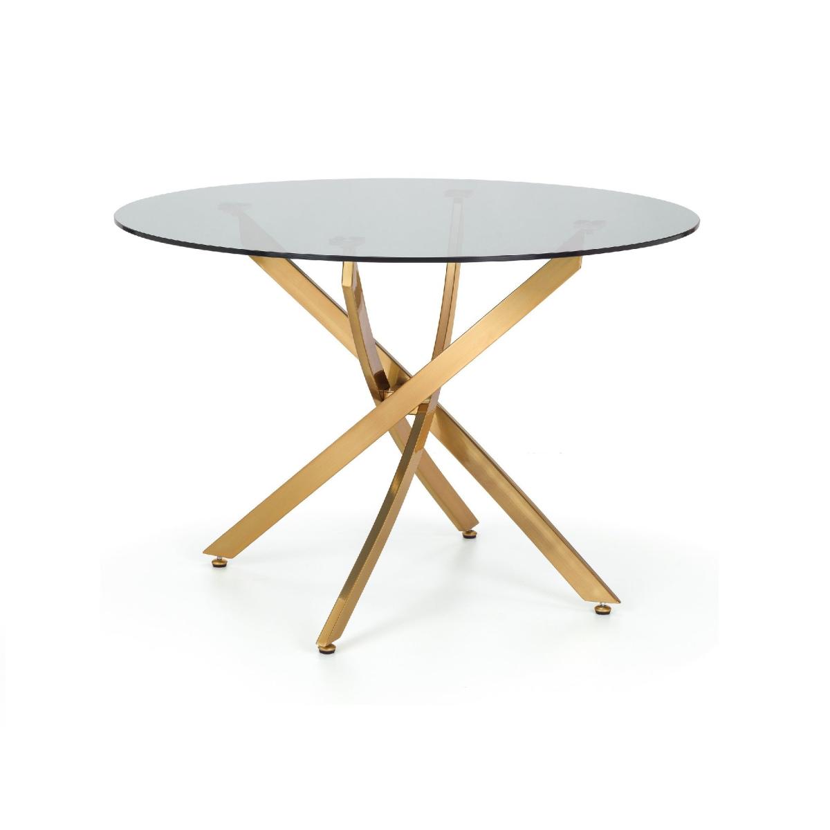 Gatsby called - he wants his dining set back. Dine in style and class with this Minori dining set, featuring a luxe mix of velvet, gold-effect finish, and smoked glass that's sure to wow you and your guests day in and day out. Tempered glass and sturdy steel make for a durable construction sure to stay with you for years, so you don't have to worry about having to part with such a stylish piece!.