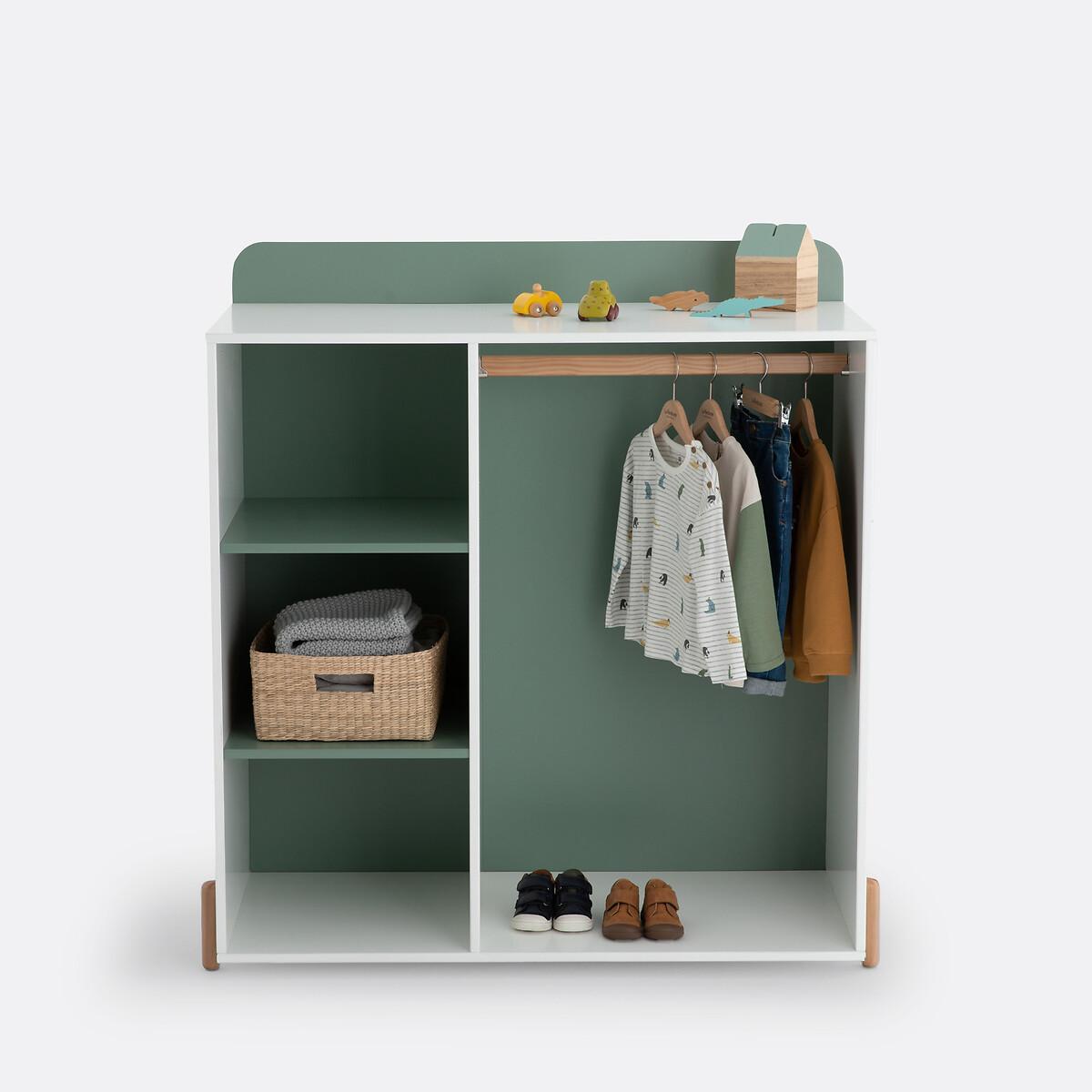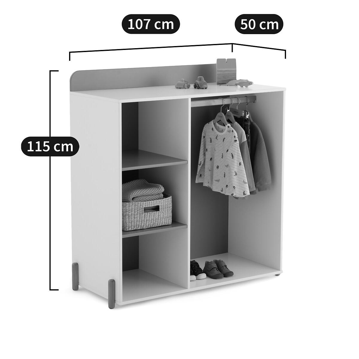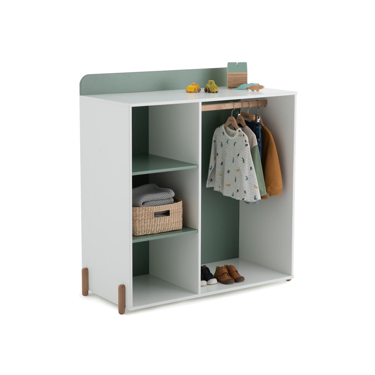 Composed of a clothes hanging rail and shelves, this piece of furniture is designed at a child's height, according to the Montessori method.. By allowing your little one to choose their own clothes, it promotes natural learning and the development of their autonomy. Product Details • MDF water-based acrylic finish • 2 shelves on the left side + 1 wardrobe on the right side. Dimensions • Width: 107cm • Height: 115cm • Depth: 50cm Delivery:Assembly required. Available for home delivery. Note! Please check that all access points are large enough to accommodate your delivery (doors, stairs, lifts). • Made in Europe. Dimensions and weight of parcel:2 parcels • L116 x H5.5 x D70cm. 19kg. • L119 x H8 x D57.5cm. 25kg.