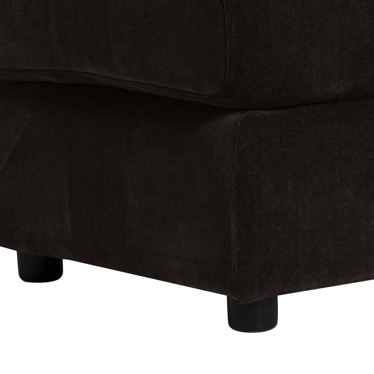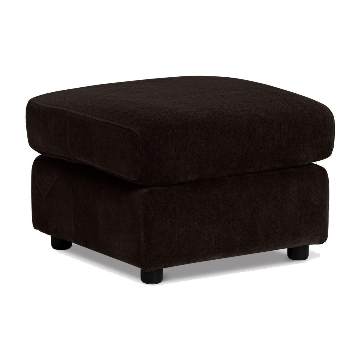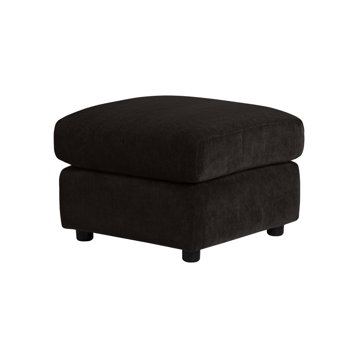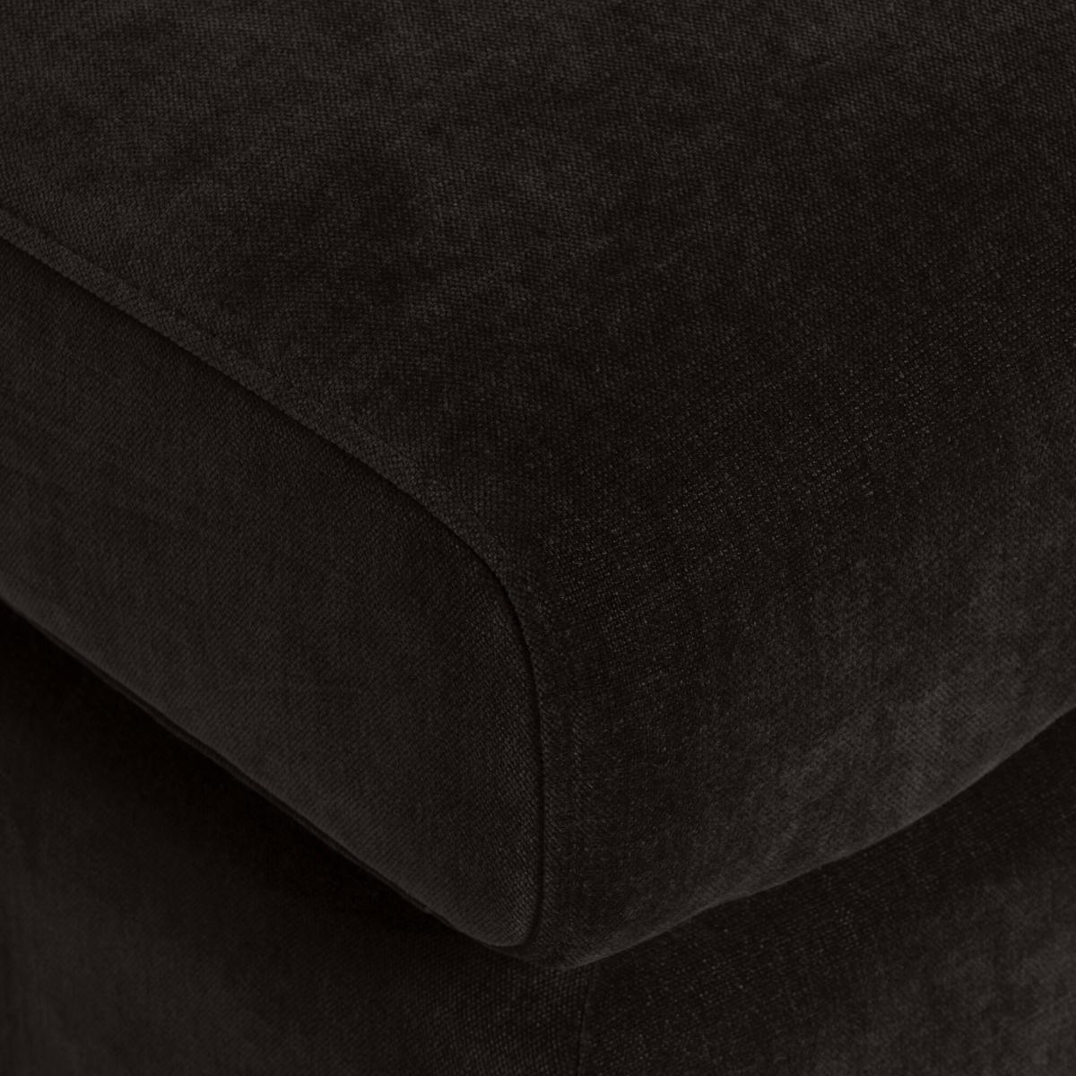 I love this footstool for its versatile style and practical size. Its dark fabric makes it an excellent choice for adding a touch of sophisticated contrast to both contemporary and classic interiors. It works particularly well in living rooms with neutral or monochrome schemes, providing a cosy and understated finishing touch. For styling, consider pairing it with a mix of textured cushions and throws to soften its look, or placing it alongside a statement armchair for an inviting, relaxed vibe. Its compact design makes it ideal for small spaces or as a supplementary piece in larger rooms, providing extra seating or a handy surface for resting feet without overpowering the overall decor.