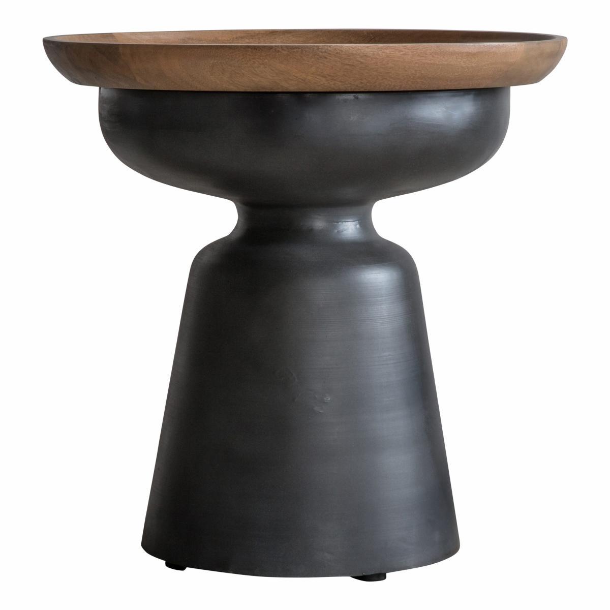 I love this side table for its sleek black finish and versatile design, which makes it adaptable to a variety of interiors-from modern minimalism to industrial spaces. Its sturdy metal construction ensures durability, while the rounded wooden top adds warmth and a touch of natural texture. It works particularly well styled next to a sofa or armchair, with a statement lamp, favourite book, or a small plant to enhance its simplicity. Practical tips include using it to hold seasonal décor or a glass of water, making it both functional and visually appealing. Its understated elegance makes it a reliable addition that can easily blend with other furnishings, adding a sophisticated touch without overpowering the space.