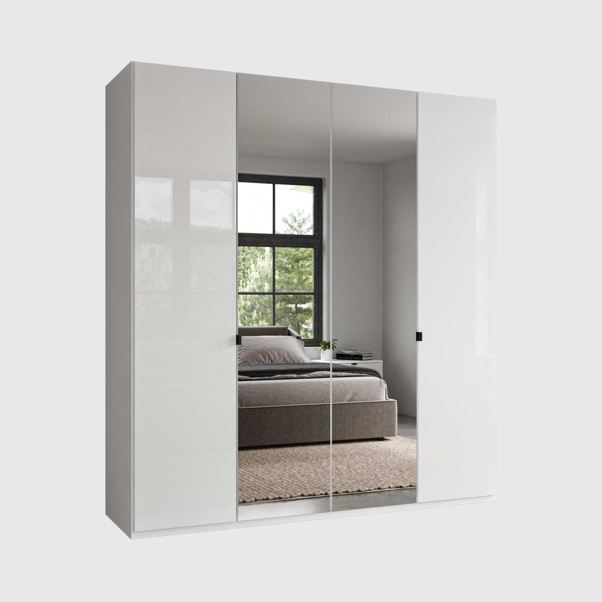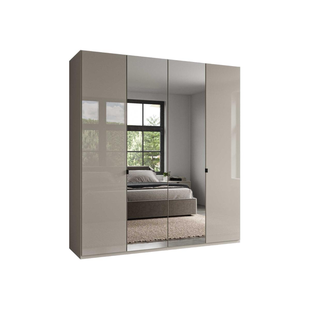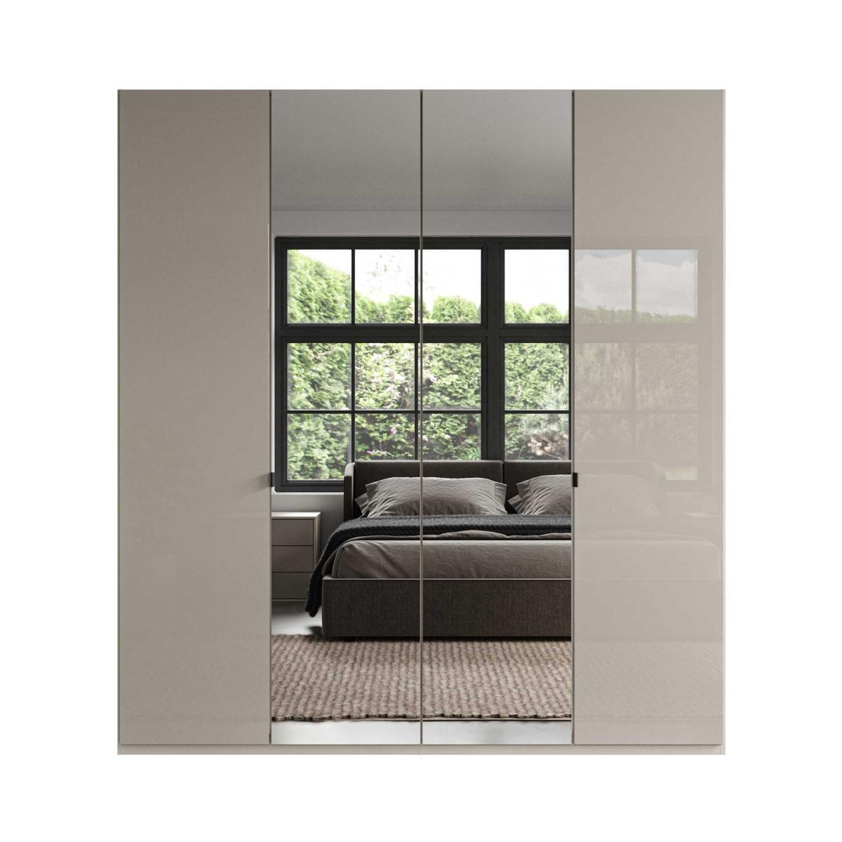 The Monticello Glass 4 Door 200cm Hinged Wardrobe with 2 Central Mirrored Doors effortlessly combines modern sophistication with everyday functionality. Expertly crafted from engineered wood, it features sleek coloured glass fronts and robust slate handles, adding a refined, contemporary flair to any room. Soft-close hinges and sturdy metal back mounts deliver smooth, durable performance. Inside, two generous double compartments offer versatile storage with adjustable shelves and hanging rails, allowing you to tailor the space to your needs. Pre-drilled mounting holes and angled shelf supports enhance flexibility. Available in elegant finishes like Dark Rustic Oak, White, Champagne, and Pebble Grey, this wardrobe is delivered and professionally assembled for a truly hassle-free upgrade to your home