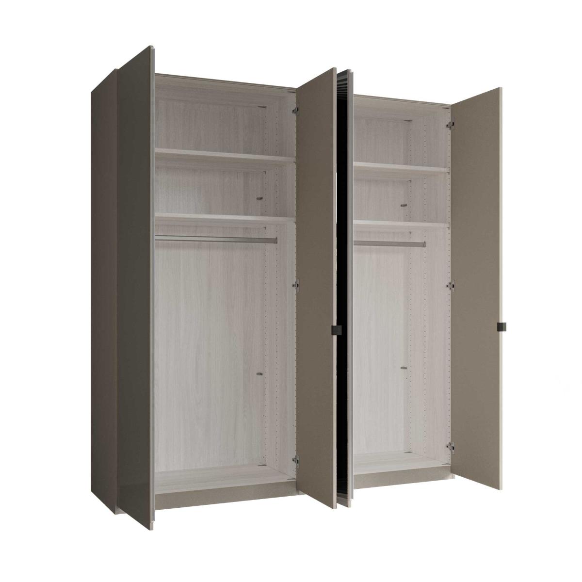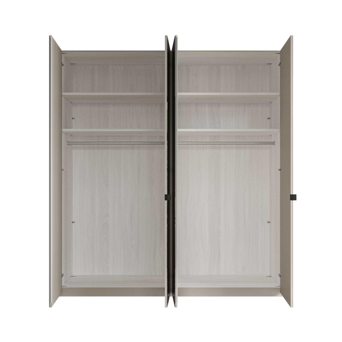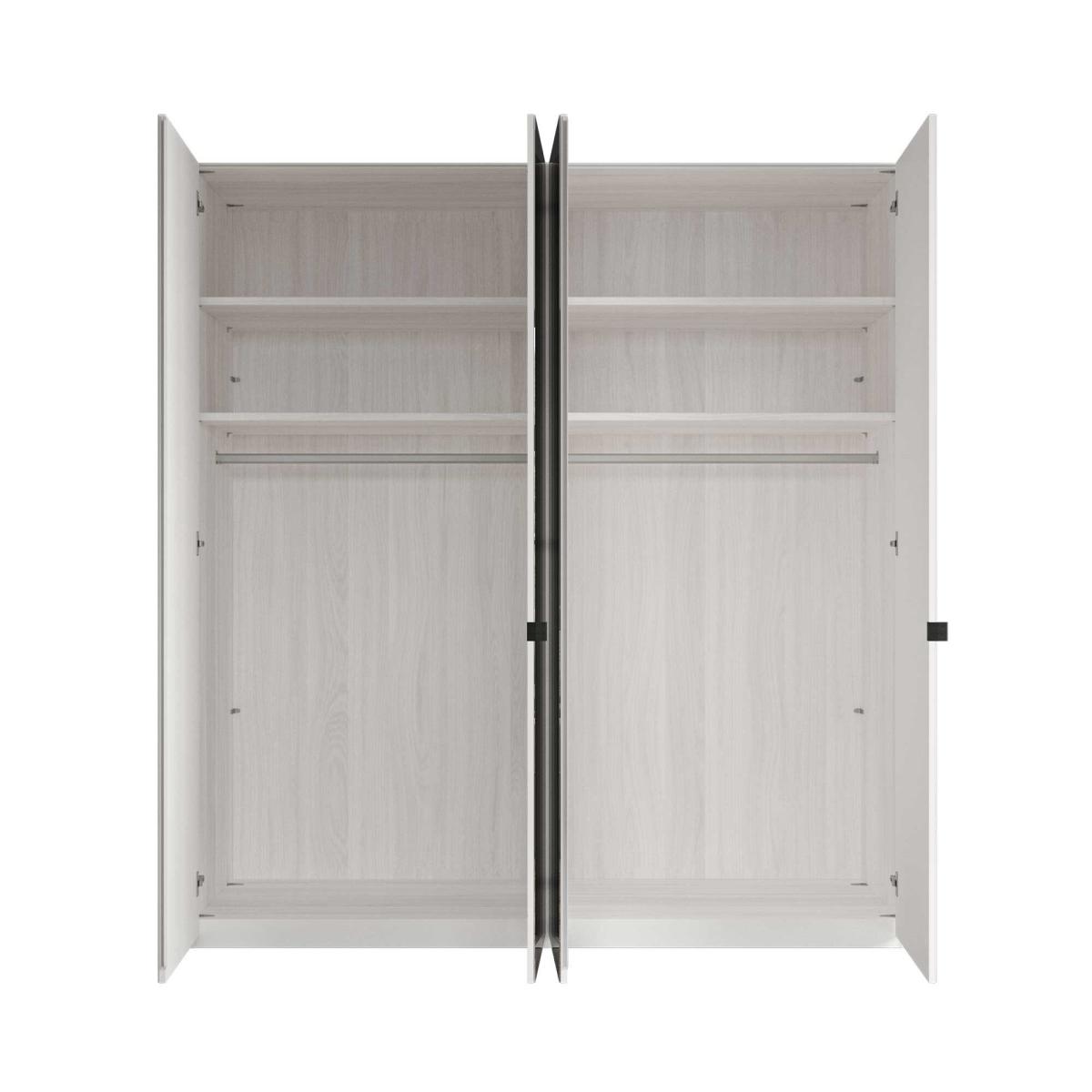The Monticello Glass 4 Door 200cm Hinged Wardrobe with 2 Central Mirrored Doors effortlessly combines modern sophistication with everyday functionality. Expertly crafted from engineered wood, it features sleek coloured glass fronts and robust slate handles, adding a refined, contemporary flair to any room. Soft-close hinges and sturdy metal back mounts deliver smooth, durable performance. Inside, two generous double compartments offer versatile storage with adjustable shelves and hanging rails, allowing you to tailor the space to your needs. Pre-drilled mounting holes and angled shelf supports enhance flexibility. Available in elegant finishes like Dark Rustic Oak, White, Champagne, and Pebble Grey, this wardrobe is delivered and professionally assembled for a truly hassle-free upgrade to your home