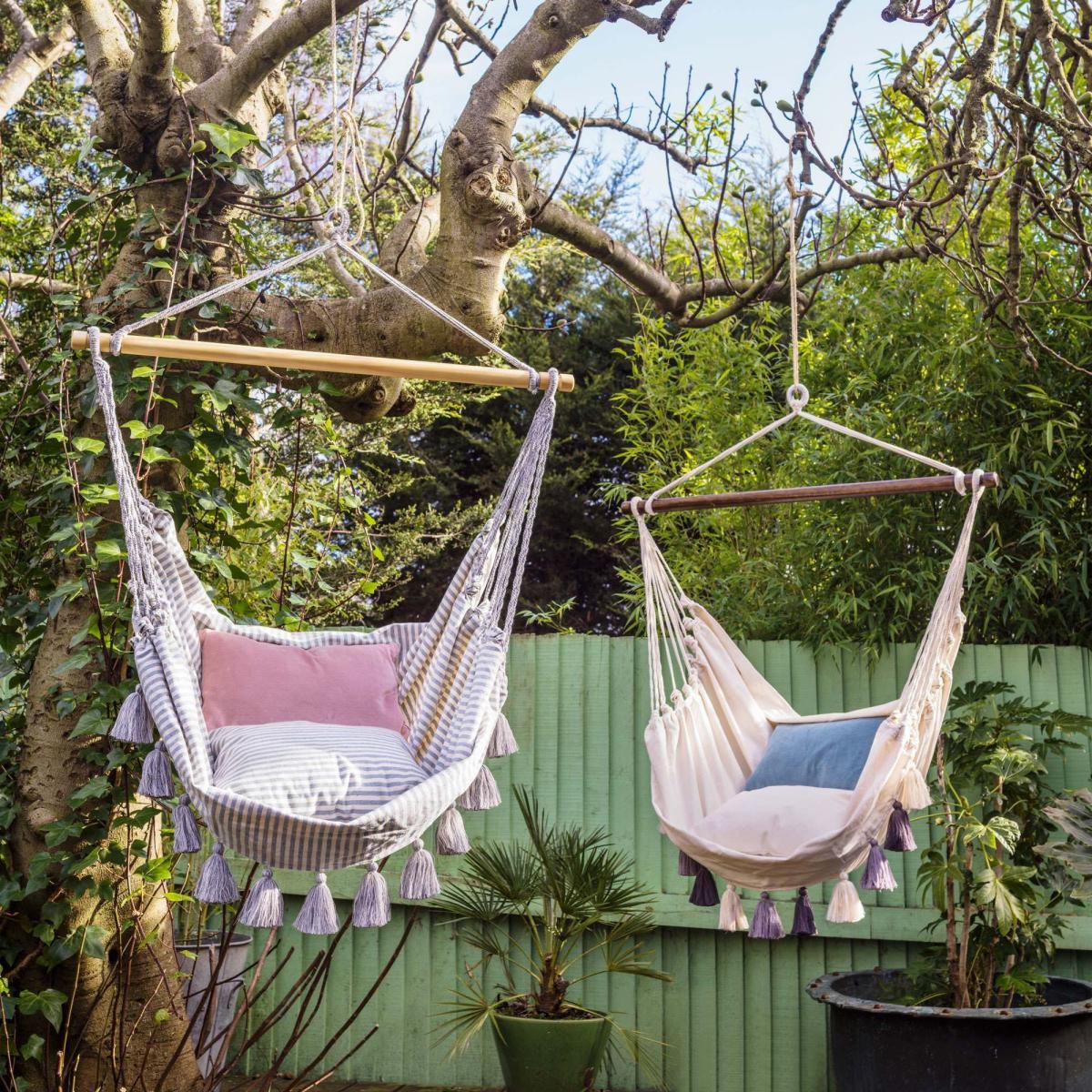 I love the Montpellier tassel swing - it adds a playful yet relaxed vibe, perfect for creating a cosy nook in both indoor and outdoor spaces. Its neutral tones and playful tassels make it versatile enough to suit boho, eclectic, or even modern gardens. To style it effectively, pair it with layered cushions and throws in soft hues to enhance comfort, and hang it from a sturdy tree branch or ceiling hook depending on the setting. For outdoor use, framing it with lush greenery or garden planters can elevate its charm, while indoors it works well in a bright corner or even a spacious winter garden for a fun, casual touch.