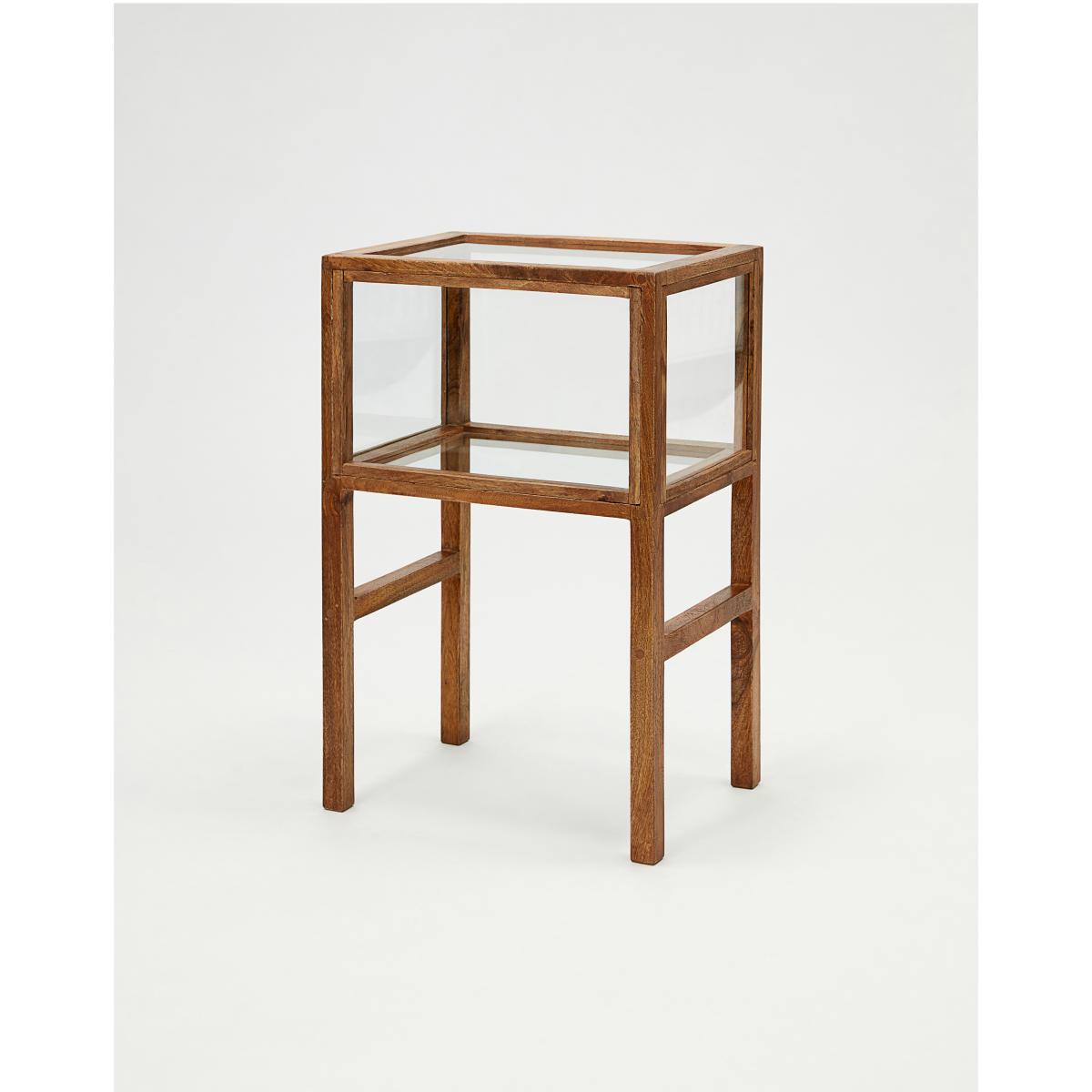 Montre side table 28x38 cm from House Doctor is made of mango wood and has two glass table tops. The lower table top is surrounded by glass walls, which means that this small table also functions as a beautiful display cabinet. Display small decorative details in the table to create an elegant and useful table beside the sofa or armchair.
