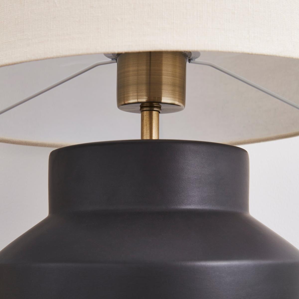 Featuring a stunning matt black glazed finish, the Montreal large table lamp offers a modern chic design, perfect for any contemporary home. This stylish ceramic lamp comes complete with a gorgeous contrasting natural coloured shade, crafted from a linen cotton blend, adding to the sophisticated look.