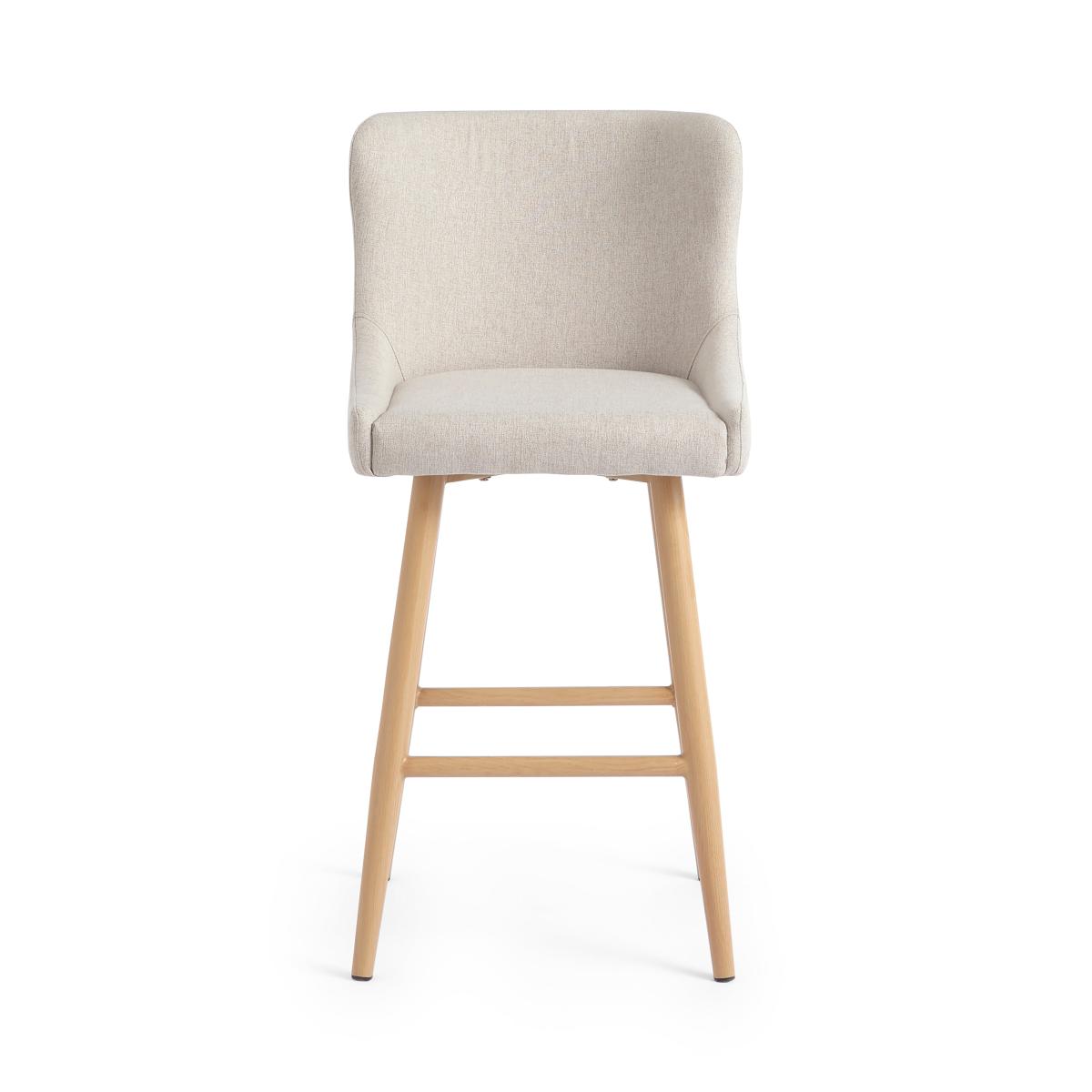Embrace classic elegance with this Montreal bar stool, The natural tones of the super soft fabric upholstery, combined with wood effect legs, create a warm and inviting ambiance in your home. Designed at counter height, this bar stool ensures optimal comfort for your bar or kitchen island seating. The curved backrest adds a touch of sophistication while providing ample lumbar support during long gatherings. This bar stool not only boasts an attractive appearance but also delivers durability and stability through its wooden legs.
