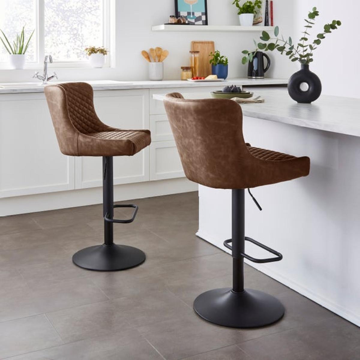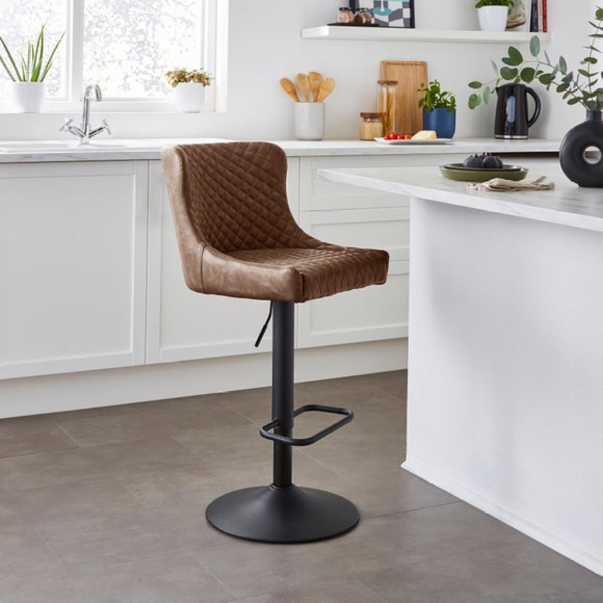 This barstool's faux leather finish and height-adjustable feature make it a versatile choice for contemporary kitchens and breakfast bars. I love how its sleek design and neutral tone can effortlessly complement both minimal and more eclectic interiors. It's particularly well-suited for modern, urban spaces thanks to its clean lines and practical functionality. To style around it, consider pairing with a marble or laminate worktop to enhance its contemporary vibe, while adding a few textured textiles like cushions or a wool throw can soften the look for a cosy, inviting feel. Practical tip: use it in casual dining areas or as a stylish perch for a home bar, as its adjustable height ensures comfort for users of different heights.