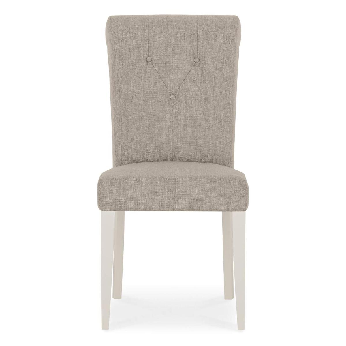 Fully upholstered in beautiful pebble grey fabric with an attractive button detail to the back, these dining chairs also feature a scroll back detail to bring a touch of elegance into any dining room or dining kitchen. When paired with the matching Montreal dining tables available in different sizes and other pieces from the montreal furniture collection, these super comfy dining chairs will look great! Supplied as a pair Dimensions (each chair):46cm W x 62cm D x 95cm H Fully assembled All screens vary in colour reproduction and whilst every effort has been made to display the colour as accurately as possible it is for guidance only.