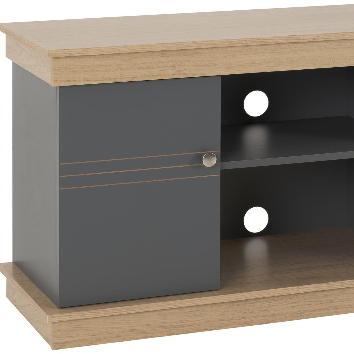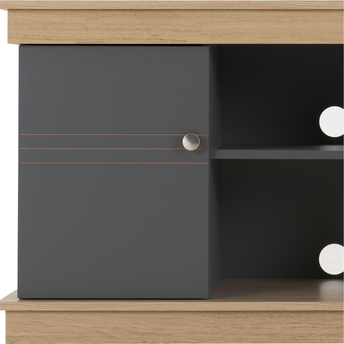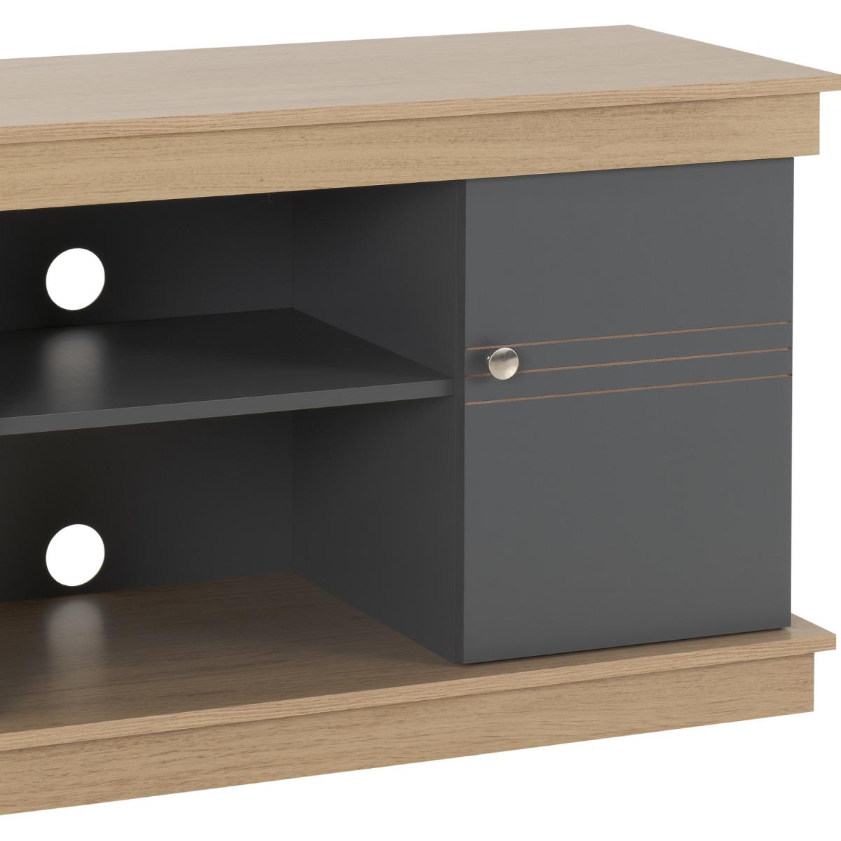 I love this dark grey oak effect TV unit for its versatile, modern look that works well in both contemporary and Scandinavian-inspired interiors. Its neutral tones and clean lines make it easy to style with various colour schemes and accessories, from colourful decorative vases to minimalist picture frames. Practical tips include layering with textured soft furnishings nearby to soften the space, and using the open shelves for easy access to media equipment or decorative objects. It’s ideal for smaller living rooms where space optimisation is key, providing ample storage without visual bulk. Overall, it’s a stylish and functional piece that can anchor a cosy, modern lounge effortlessly.