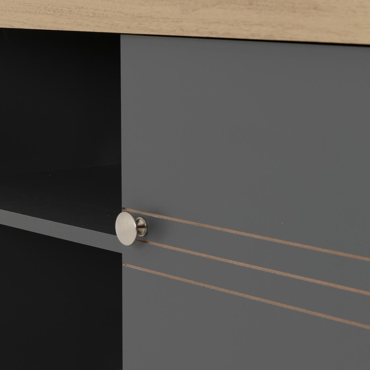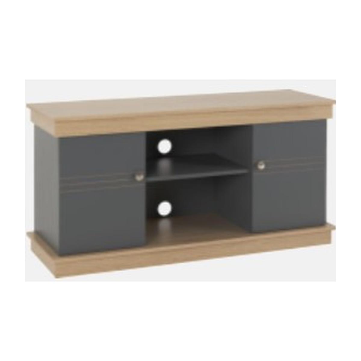 Adding a dash of traditional appeal with contemporary practicality, this TV stand is a stylish solution for display and storage woes. The clean-lined silhouette and two-tone colour palette add to its vintage-inspired charm, while two cabinets and two shelves provide plenty of storage space for a media library, electronics and more. A cable management system helps you keep everything tidy.