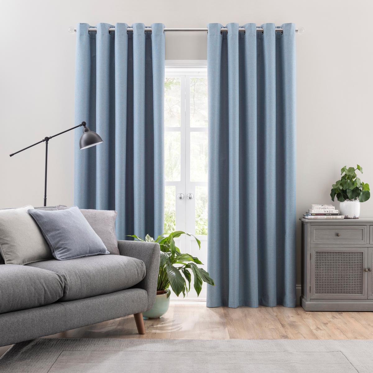 Made with three layers of blackout coating for premium performance, these elegant Montreal Ultra Blackout eyelet curtains are ideal for ensuring maximum light block and are plain in design to complement any room. Designed with a discreet blackout-lined panel which folds down behind your curtain pole to prevent light coming through the eyelets. Secured with Velcro fastenings which attach to your curtain pole, these curtains wrap around your window to prevent light from entering at the sides of the curtain and are perfect for ensuring maximum light block. The blackout coating with thermal properties, improves insulation by blocking out heat in summer and maintaining warmth in winter. These curtains bring a stylish edge to any room and are perfect for improving privacy whilst ensuring a great night's sleep. Available in a selection of colours and sizes to suit your requirements.