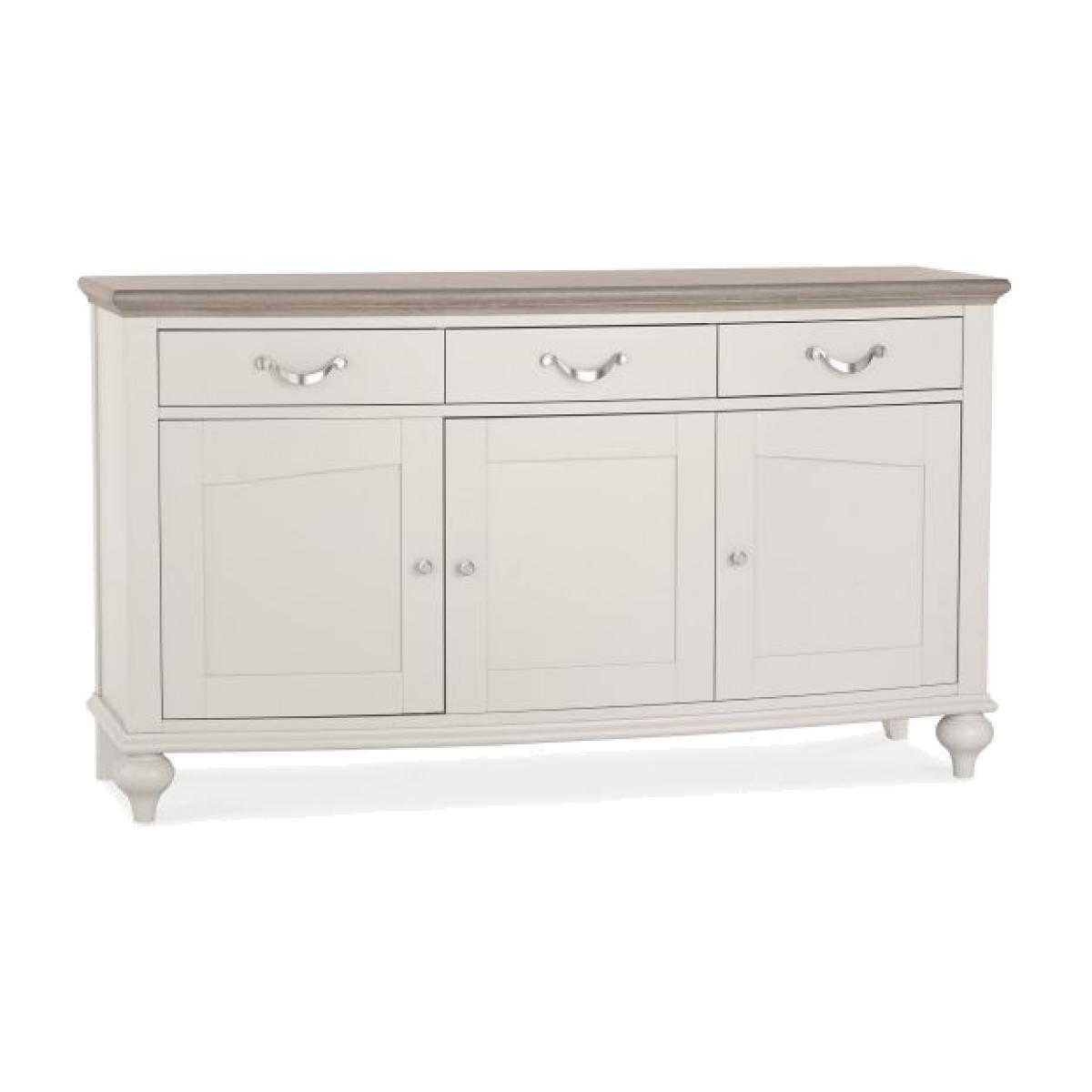 I’m a fan of this Montreal sideboard for its clean lines and soft two-tone finish, which makes it equally at home in a country-cottage dining room or a pared-back Scandi living space. The neat drawers and cupboards give plenty of concealed storage, so it’s ideal for hiding away table linens, board games or household paperwork. For styling, keep the top surface clutter-free: a round mirror or framed print above, a low vase of greenery and a couple of ceramic pots or brass candlesticks will add interest without overwhelming the look.