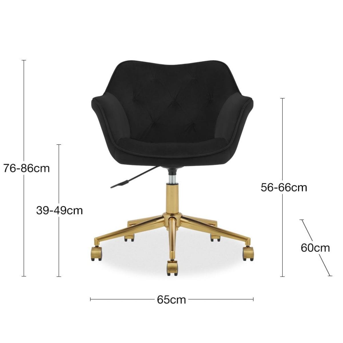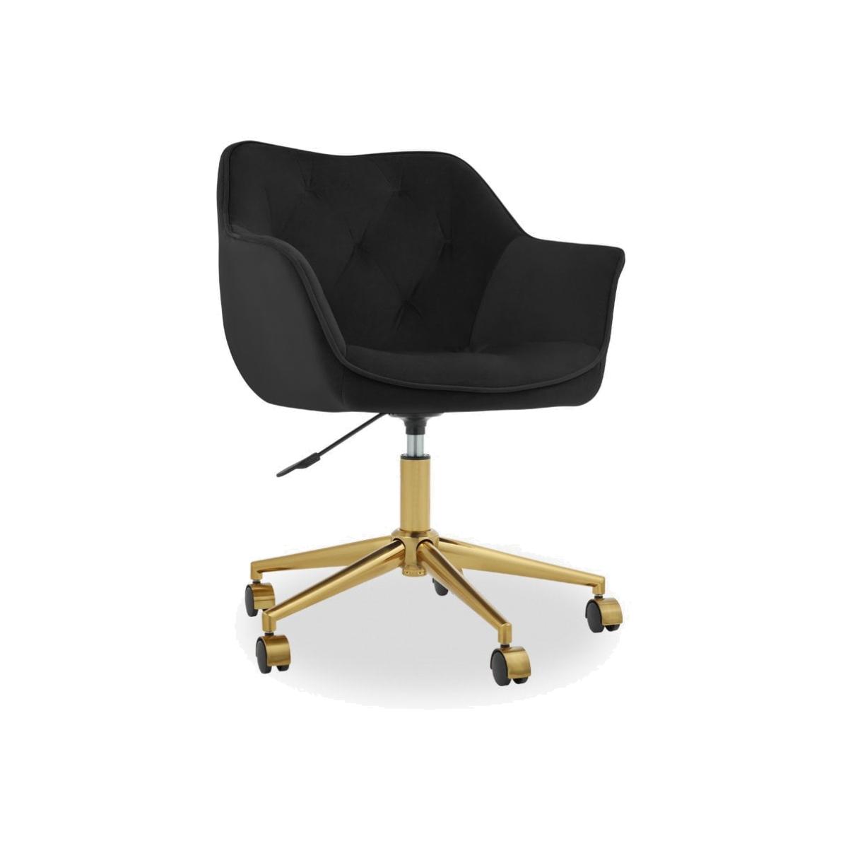 The Montrose office chair features black velvet padded seats, tufted button detailing, and curved armrests for a comfortable seat in your home office. With swivel metal base on five wheels, and height-adjustable seating, working from home becomes a breeze.