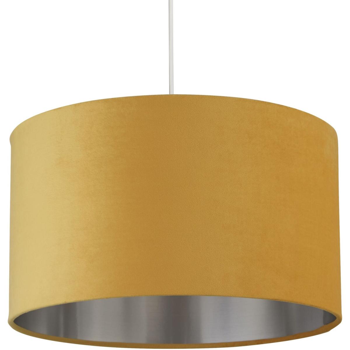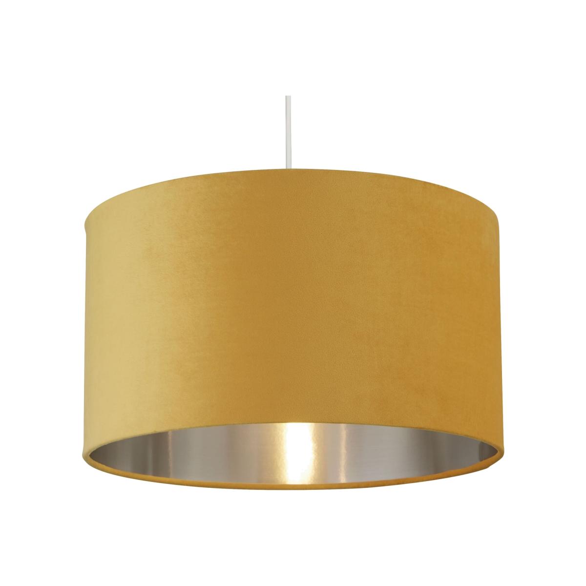 Elevate any room in the home with this beautiful 45cm ochre velvet shade. This shade also has a contrasting silver metallic inner and can be used as either a ceiling light or with a lamp base due to its reversible gimble.