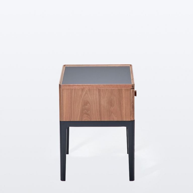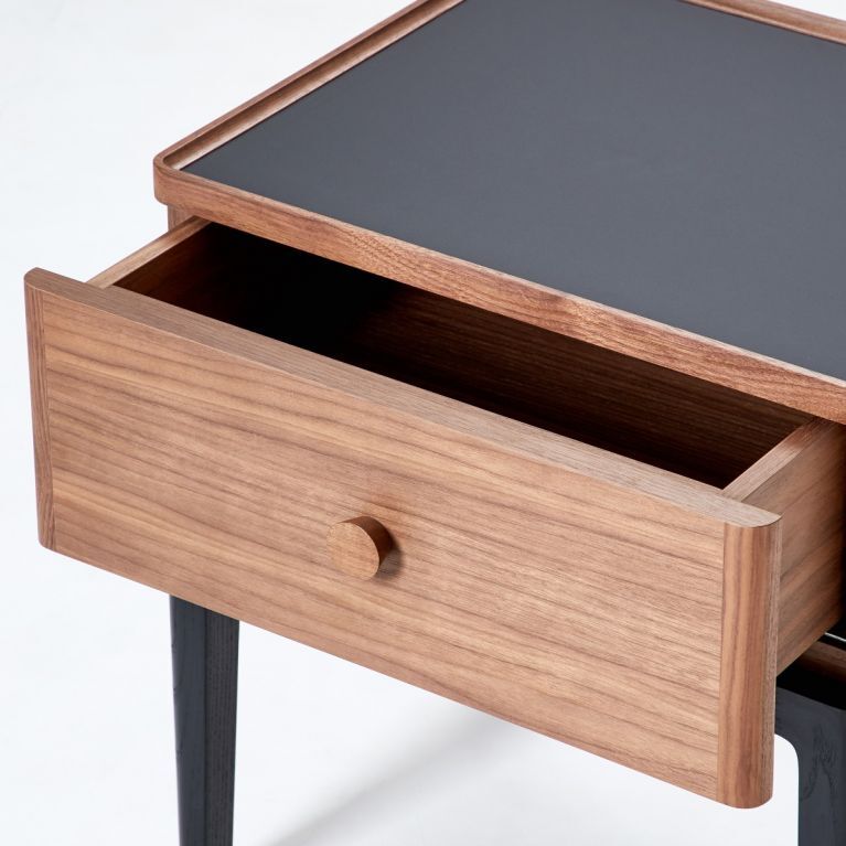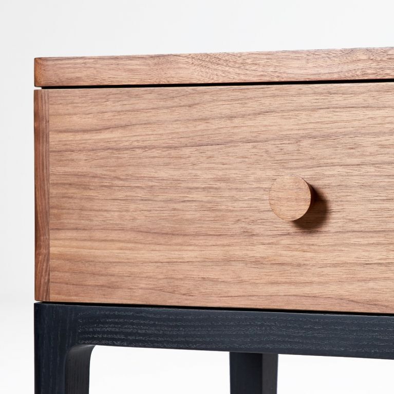 The elegant Monument One-Drawer Bedside Table marks a continuation of the considered collaboration between The Conran Shop and Gabriel Tan. Each table is a fusion of solid and veneered oak or walnut with a solid ash base. Completed with a heatproof Fenix top, the innovative, lightfast material is renowned for its anti-bacterial, fingerprint-proof and dust-repellent properties, as well as its resistance to impact and scratching. With studios in Singapore and Portugal, Gabriel Tan's work crosses the borders of craft, culture and technology. Striving to subvert archetypes and reinterpret luxury pieces, the Monument collection beautifully demonstrates Tan's aptitude for functional, creative design.