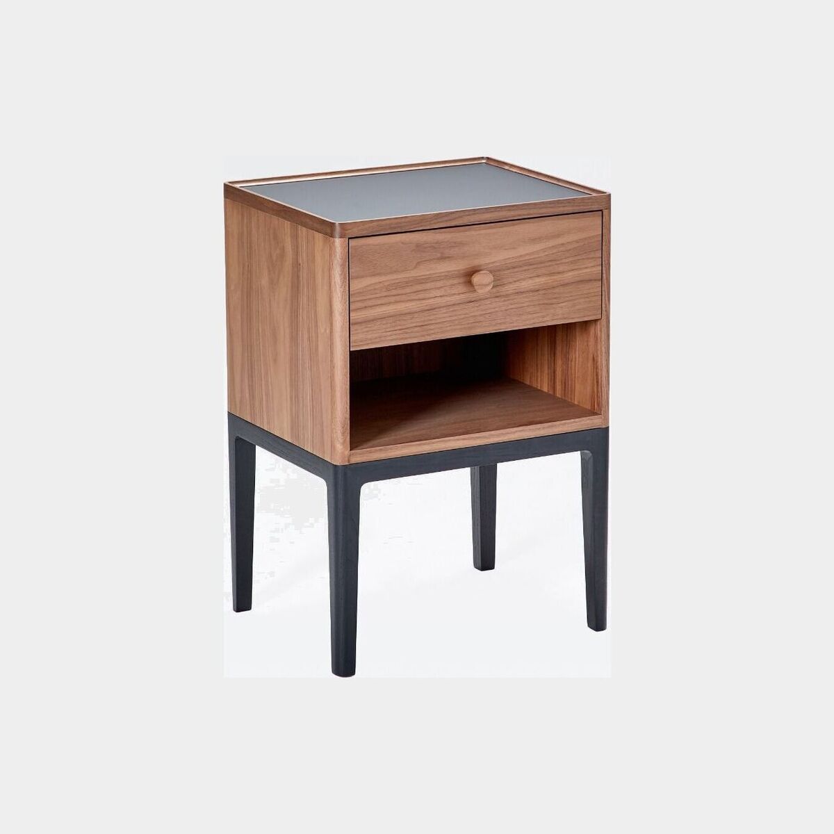 The elegant Monument One-Drawer Bedside Table with Niche marks a continuation of the considered collaboration between The Conran Shop and Gabriel Tan. Each table is a fusion of solid and veneered oak or walnut with asolid ash base. Completed with a heatproof Fenix top, the innovative, lightfast material is renowned for its anti-bacterial, fingerprint-proof and dust-repellent properties, as well as its resistance to impact and scratching. With studios in Singapore and Portugal, Gabriel Tan's work crosses the borders of craft, culture and technology. Striving to subvert archetypes and reinterpret luxury pieces, the Monument collection beautifully demonstrates Tan's aptitude for functional, creative design.