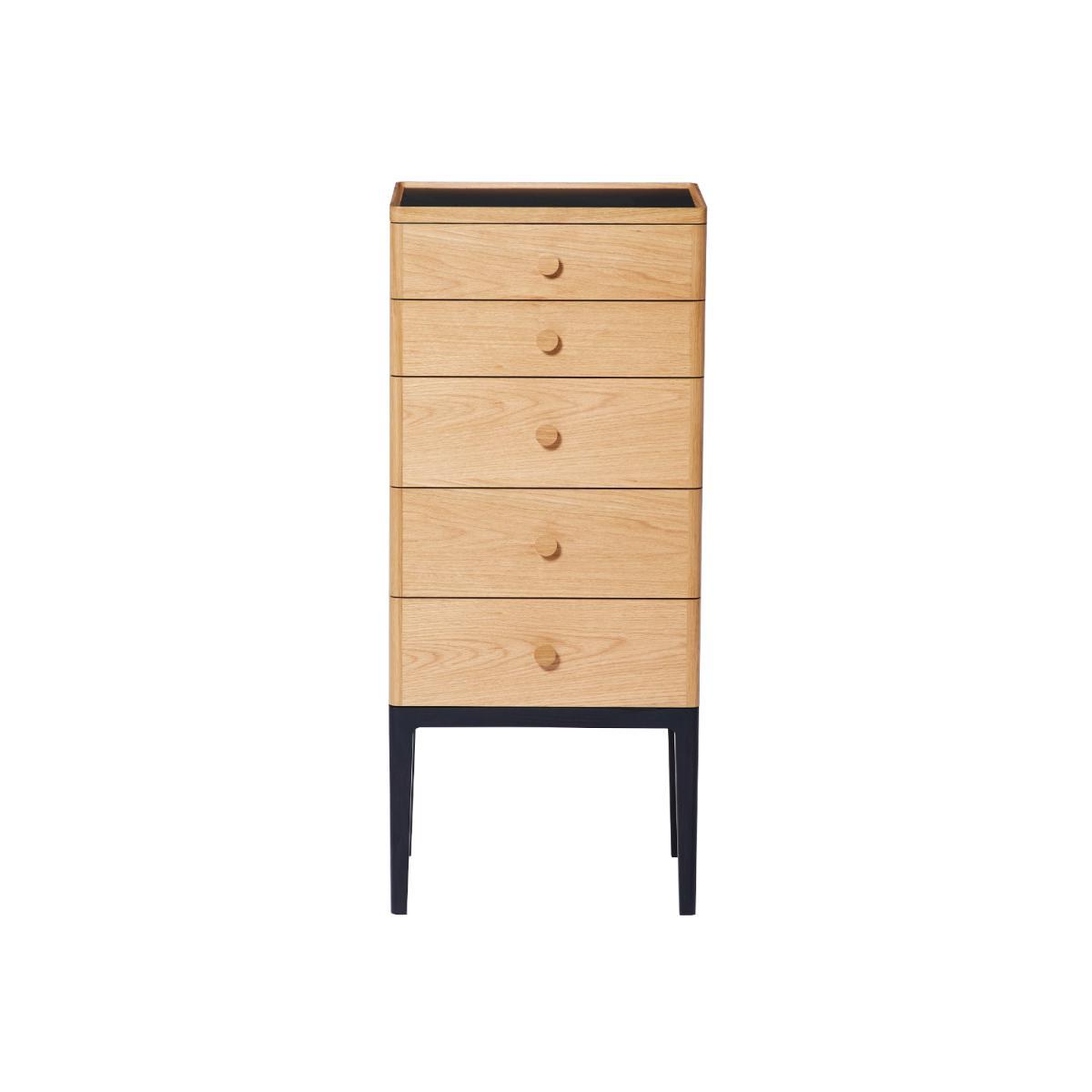 The elegant Monument Five-Drawer Tallboy marks the latest collaboration between The Conran Shop and Gabriel Tan. Each chest of drawers is a fusion of solid and veneered oak with a solid ash base. Completed with a heatproof Fenix top, the innovative, lightfast material is renowned for its anti-bacterial, fingerprint-proof and dust-repellent properties, as well as its resistance to impact and scratching. With studios in Singapore and Portugal, Gabriel Tan's work crosses the borders of craft, culture and technology. Striving to subvert archetypes and reinterpret luxury pieces, the Monument collection beautifully demonstrates Tan's aptitude for functional, creative design.