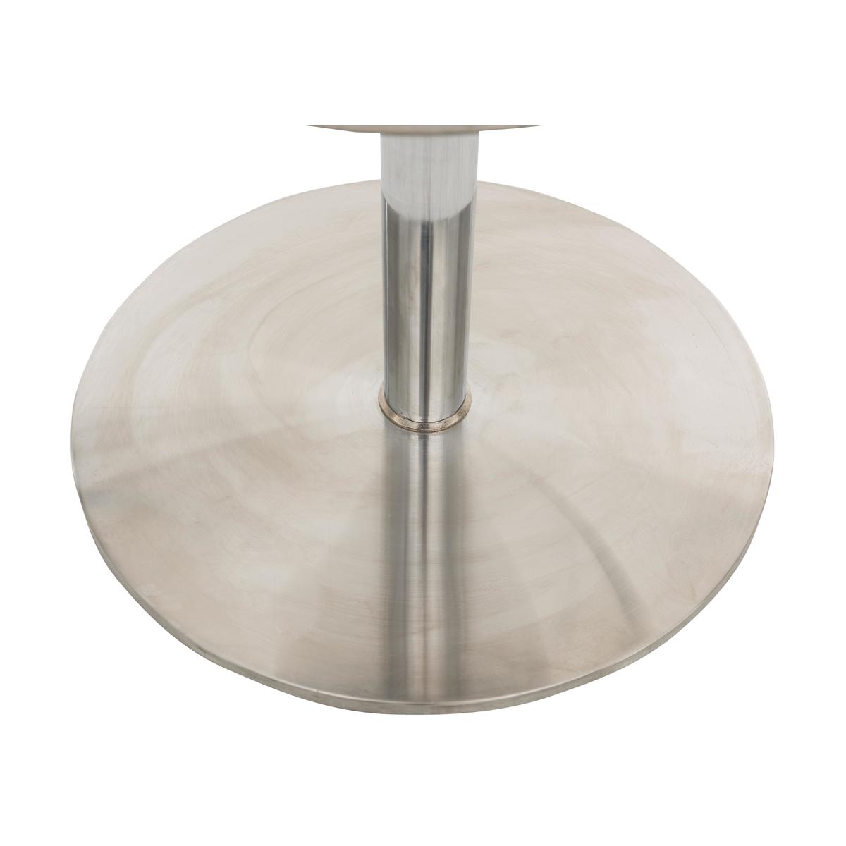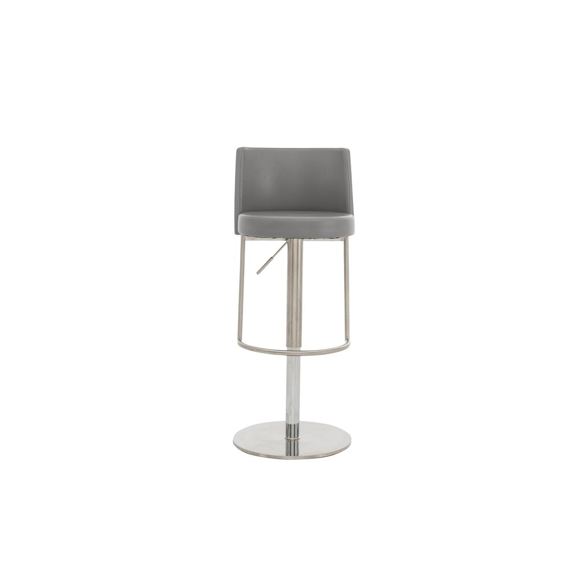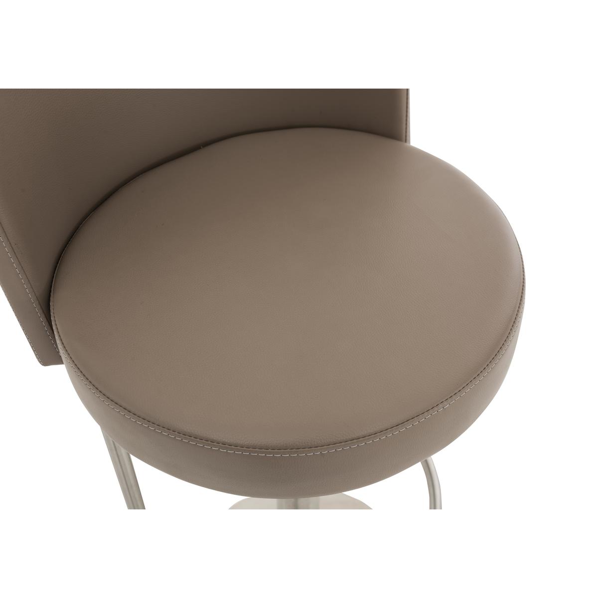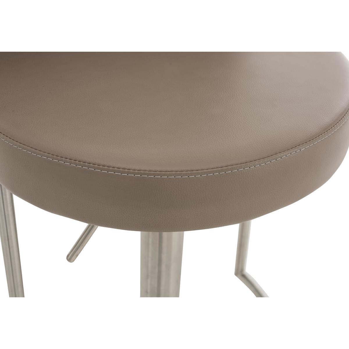 Everything about the Monza bar stool is cool, curved and comfortable. This designer- style bushed stainless steel bar stool is set on a circular base and has a curved back and rounded seat, both well cushioned and upholstered in a hardwearing leather- like fabric thats available in a choice of fashionable colours and finishes. The curve of the back is stylishly mirrored by the curve of the integrated metal footrest. Completely adjustable, the Monza bar stool both swivels it rotates through a full 360 and moves up and down. The smooth, gas- powered lift action means that its easy to adjust to the perfect height for your bar table or counter. Simple self assembly required