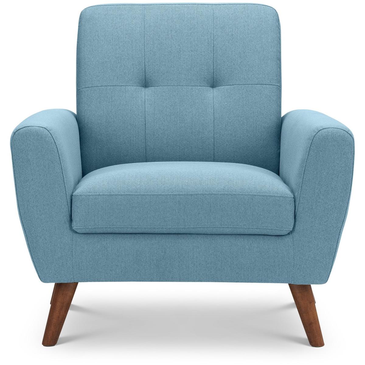 This blue armchair offers a fantastic blend of retro-inspired style and modern comfort, making it a versatile addition to many interiors. I love how the colour adds a splash of personality without overpowering the space, especially in neutral or minimalist settings. It works particularly well in cosy living rooms, reading nooks, or even as an accent piece in a bedroom corner. To style it effectively, pair with textured cushions or a throw to soften the look, or keep it streamlined for a more contemporary vibe. Its compact size makes it a practical choice for smaller spaces, while the wooden legs add a warm touch that complements natural materials or mid-century furnishings.