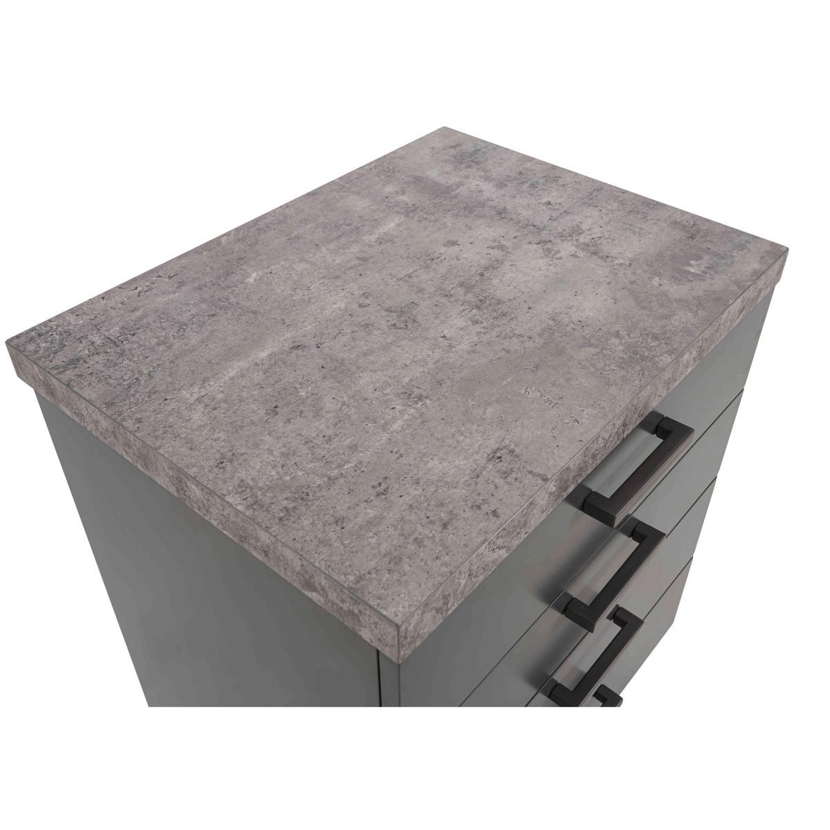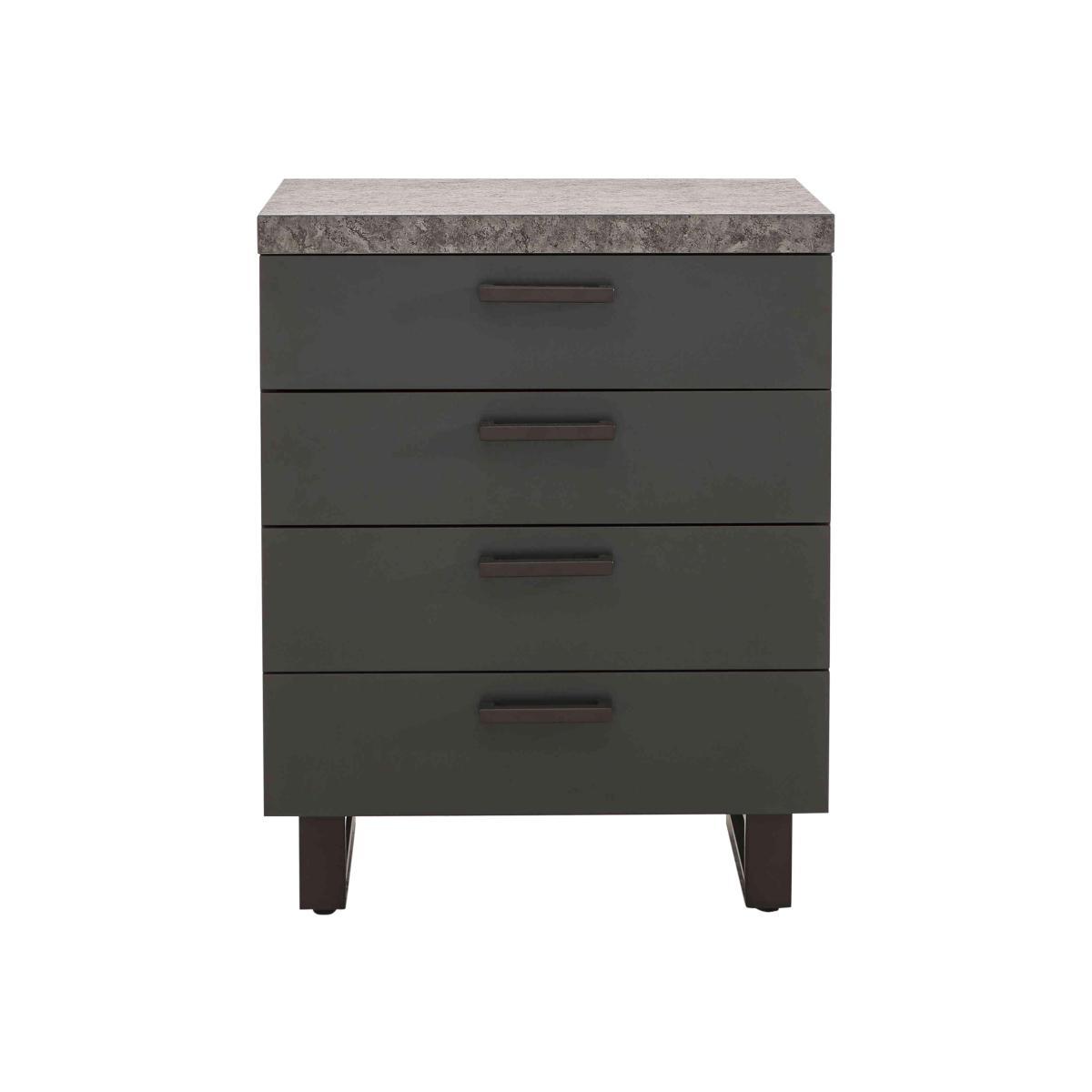 Practical home office storage doesn’t get more stylish than this piece. Part of our Moon collection, it features an industrial-cool concrete-effect top and chunky grey metal accents. Modern industrial drawer unit with concrete-effect top. Contemporary home office style. Grey frame. Chunky grey metal legs and drawer handles. Designed and crafted with care. What you need to know. 4 slim drawers for stationery and paperwork. Please note that the surface is not heat-resistant. Use coasters and placements and avoid abrasive cleaning products. Part of the Moon Office collection of desks and home office storage. WARNING!. Furniture can tip over unexpectedly and cause injury. This item should be fixed to a wall using the anti-tip kit provided with the furniture. Be sure to use the correct wall fixings suitable for the walls in your home.