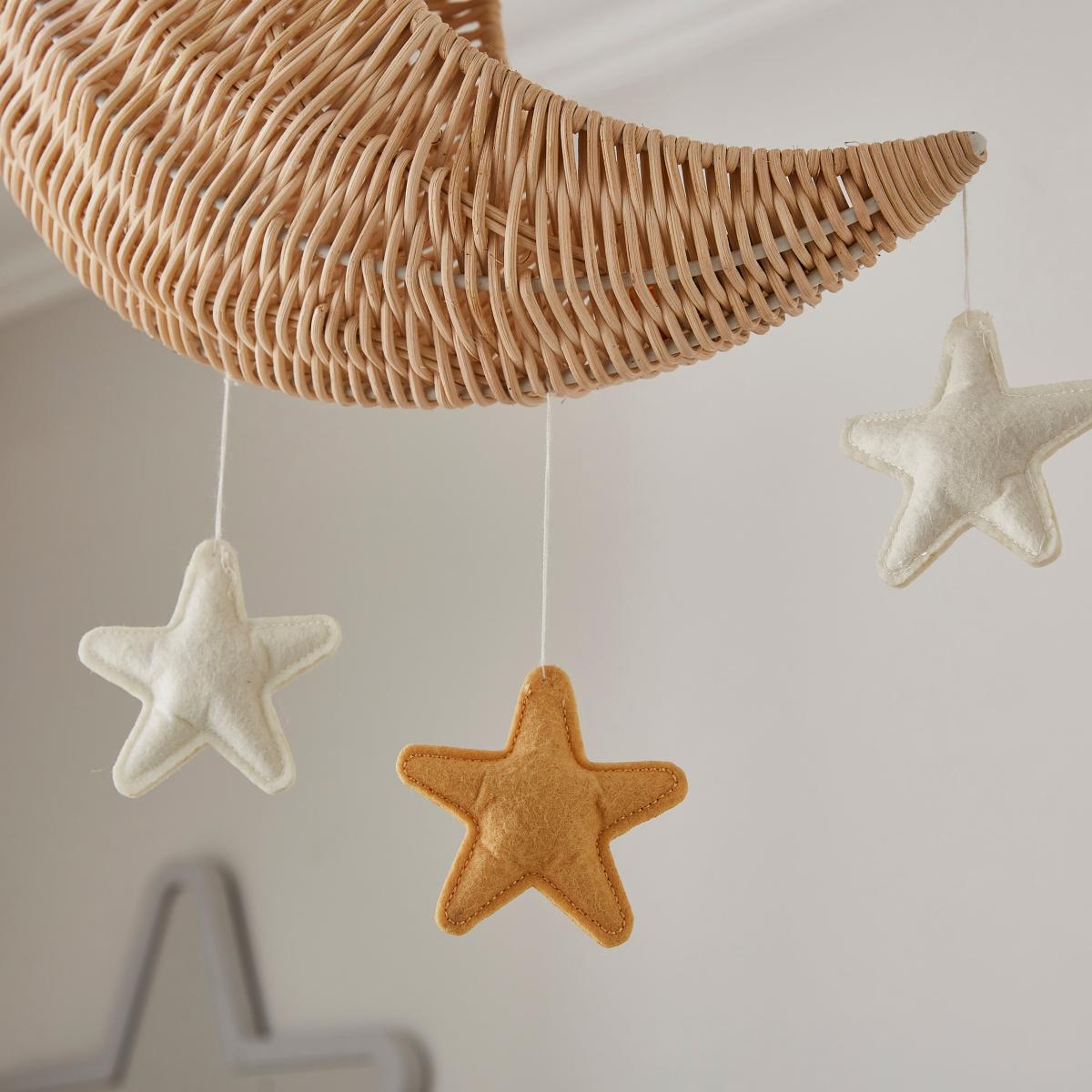 * Charming Moon & Stars Design* Made from Rattan & Felt* Easy Fit - No Electrician Required Brighten up your child's room with the Moon & Stars Rattan Easy Fit Pendant Shade. Its fun moon and stars design, made from natural rattan and felt stars, adds a playful touch to any space. Easy to fit with no need for an electrician, simply pair it with your own lighting flex for instant charm.