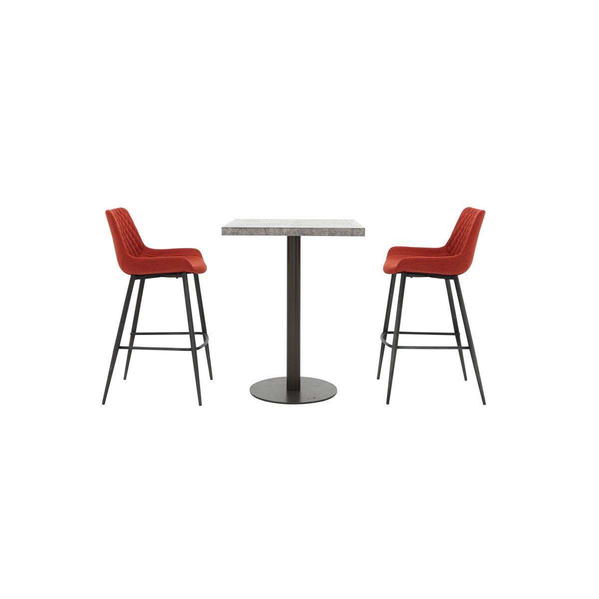 Offering a brand new twist on popular industrial style, Moon features concrete-look table tops, dark grey-painted metal bases and an overall cool and contemporary vibe. This is also a very versatile range – the concrete-effect dining table is extremely hardwearing, equally suited to family mealtimes and stylish dinner parties, and seating options include a dining chair and dining benches beautifully upholstered in dark grey faux leather. Mix and match pieces to create your own perfect dining table and chairs set or choose a ready-made dining set. Fabulous modern style at a fantastic value price. Great-value industrial style for contemporary spaces. Compact bar table has durable concrete-effect top and metal base. 2 retro-look bar stools have curved seats, low backs and vibrant upholstery. Make a real style statement – even in a smaller dining space – with the great-value Moon bar table and 2 Rocket bar stools set. Seating four, the compactly-proportioned square bar table features a concrete-effect top that offers a hardwearing surface for both stylish dining occasions and everyday meals. The pedestal base with circular foot plate is made of metal with a dark grey-painted finish. The two Rocket bar stools are the perfect pairing for this very cool bar table. With their curved seats and low backs, there’s a hint of retro style here – but the level of well-padded comfort is all modern. Choose from a range of vibrant shades for the upholstery or go for ever-fashionable grey. All options feature diamond-patterned quilted-effect stitching on the inside backs and minimal seaming on the seats. Legs are made of metal and incorporate a footrest. The Moon bar table and 2 Rocket bar stools set is part of the incredible-value Moon range of dining sets, bar dining sets and occasional furniture. Please note. The finish of each concrete-effect table top will display variations and unique markings. This should not be considered a fault. While hardwearing, this finish is not completely heat resistant. Be sure to use coasters and placemats at all times.