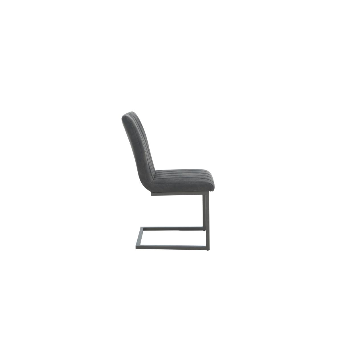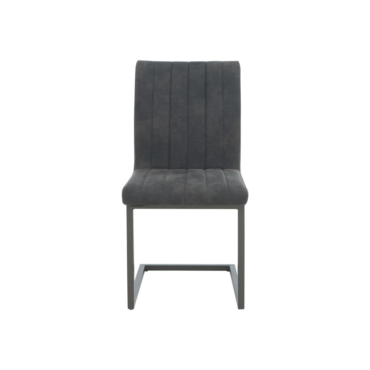 Offering a brand new twist on popular industrial style, Moon features concrete-look table tops, dark grey-painted metal bases and an overall cool and contemporary vibe. This is also a very versatile range – the concrete-effect dining table is extremely hardwearing, equally suited to family mealtimes and stylish dinner parties, and seating options include a dining chair and dining benches beautifully upholstered in dark grey faux leather. Mix and match pieces to create your own perfect dining table and chairs set or choose a ready-made dining set. Fabulous modern style at a fantastic value price. This very cool dining chair has a metal cantilever frame – for just the right amount of give – and gorgeous faux leather upholstery. It all adds up to one very comfortable dining chair. Why you'll love it. Great-value cantilever dining chair is perfect for your urban dining space. Contemporary industrial style. Faux leather upholstery in slate grey. Neat fluting on seat and back. Black powder-coated metal cantilever base. Exclusive to Furniture Village. This cantilever dining chair is part of the extensive Moon furniture range. What you need to know. Foam seat cushioning. Metal frame. Also available as part of a Moon dining set.