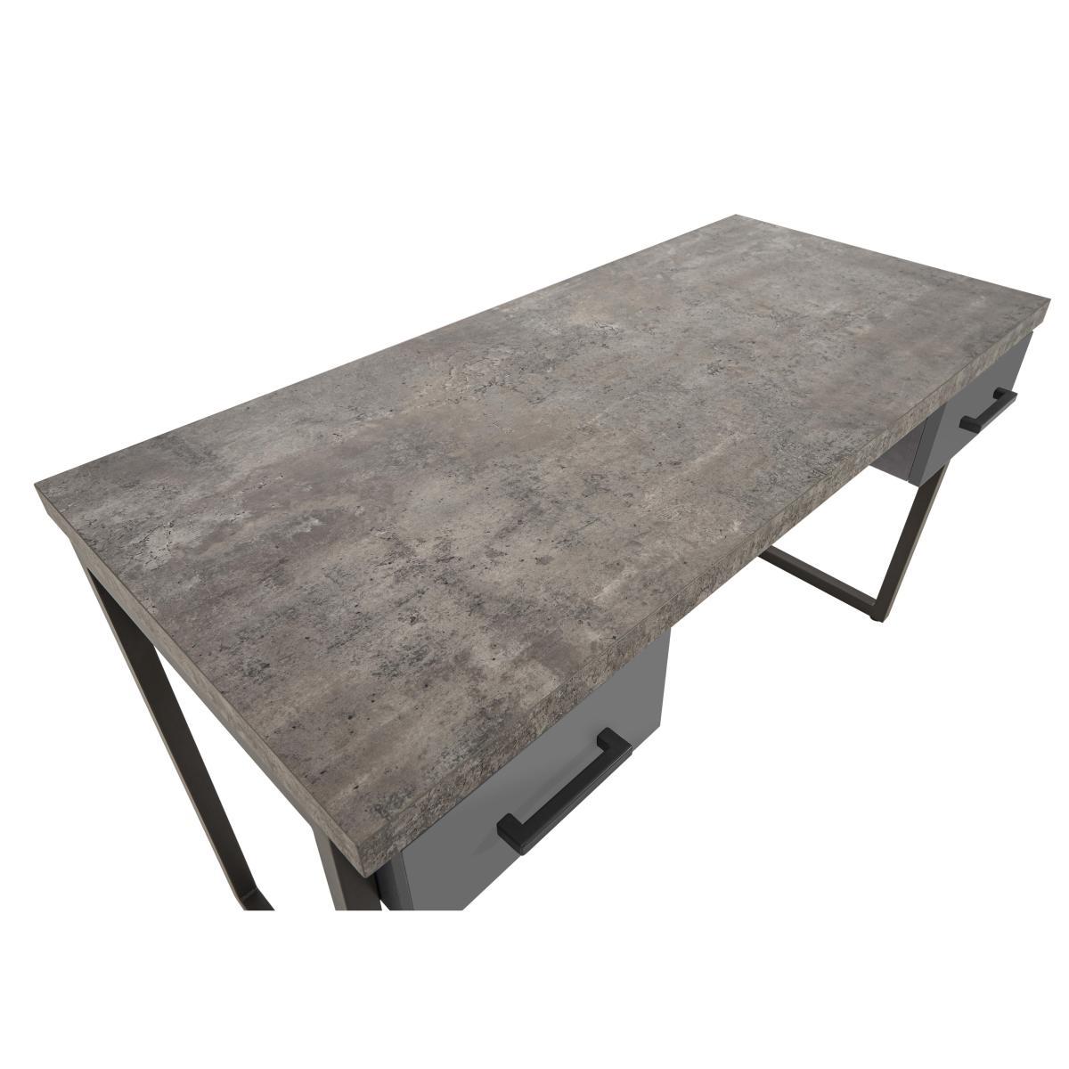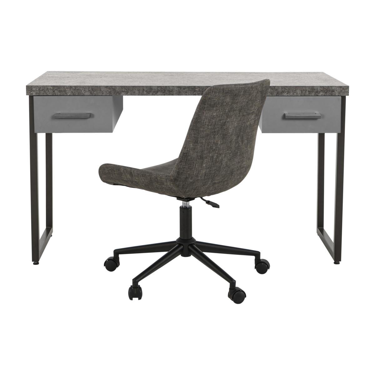 This home office setup has all the workday functionality you need but blends stylishly into any modern-industrial living or dining room thanks to its concrete-effect desk top and chunky metal accents. Modern industrial desk with 2 side drawers and concrete-effect top. Contemporary home office style. Grey frame. Chunky grey metal legs and drawer handles. Desk chair is height adjustable, swivels and set on casters. Curved seat and back upholstered in grey faux leather. Upholstery has a quilted-effect pattern. Designed and crafted with care. What you need to know. Please note that the surface is not heat-resistant. Use coasters and placements and avoid abrasive cleaning products. Part of the Moon Office collection of desks and home office storage. WARNING!. Furniture can tip over unexpectedly and cause injury. This item should be fixed to a wall using the anti-tip kit provided with the furniture. Be sure to use the correct wall fixings suitable for the walls in your home.
