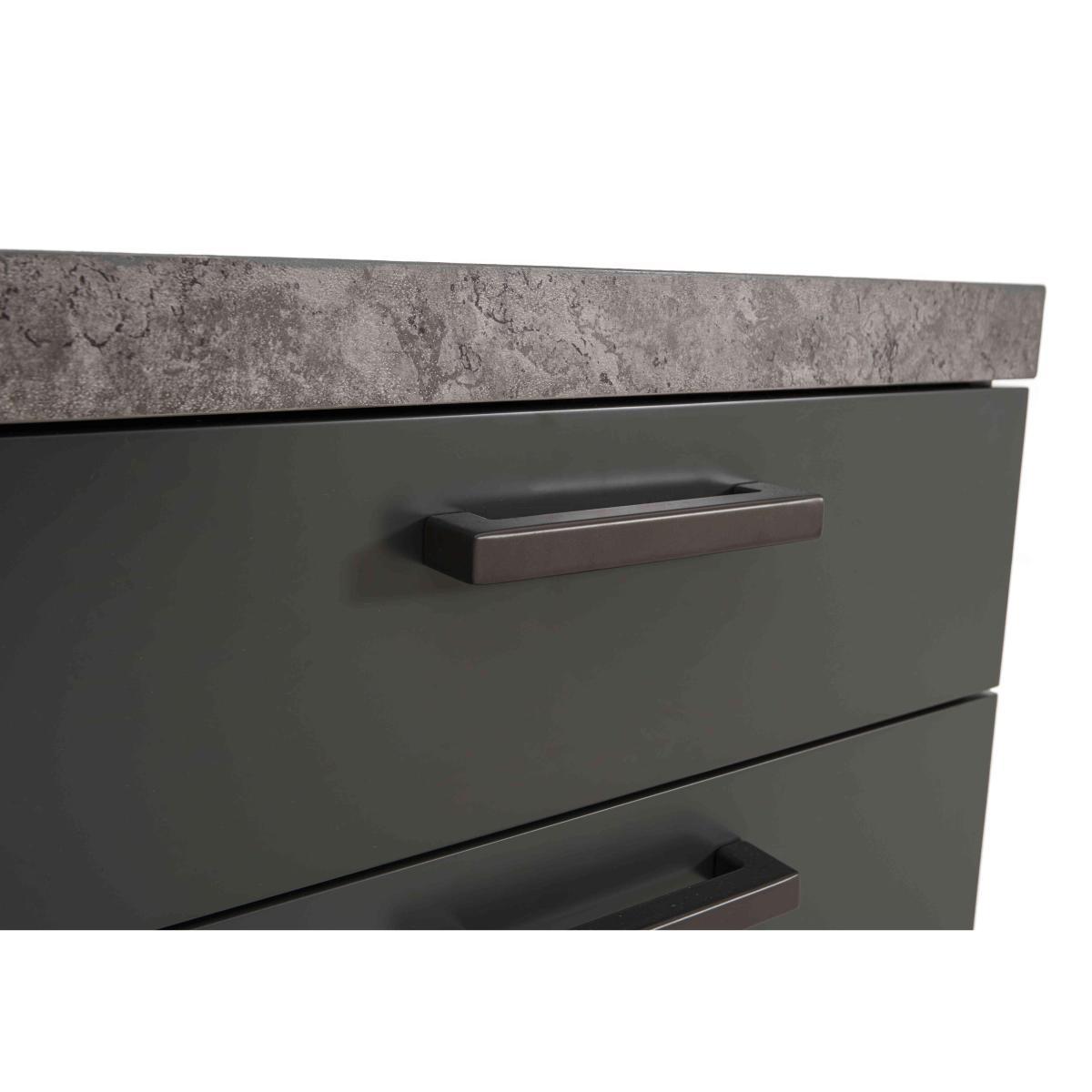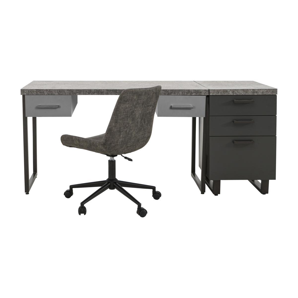 Make working from home a more stylish experience with this fabulous, modern industrial home office setup from the Moon Office collection. We love those cool concrete-effect tops and metal accents. Modern industrial office furniture with concrete-effect tops. Cool and contemporary style. Desk and filing cabinet have grey frames. Chunky grey metal legs and drawer handles. Retro-look desk chair is height adjustable, swivels and set on casters. Comfortably curved seat upholstered in grey faux leather. Designed and crafted with care. What you need to know. Desk has 2 side drawers. Filing cabinet has 2 small upper drawers. Larger lower drawer has built-in frame for A4 hanging files. Please note that the surface is not heat-resistant. Use coasters and placements and avoid abrasive cleaning products. Part of the Moon Office collection of desks and home office storage. WARNING!. Furniture can tip over unexpectedly and cause injury. This item should be fixed to a wall using the anti-tip kit provided with the furniture. Be sure to use the correct wall fixings suitable for the walls in your home.