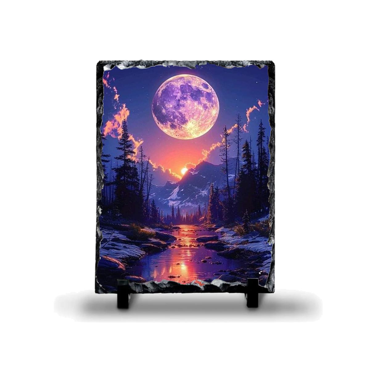 This Moon Lake photo rock slate is a unique and stylish addition to your home decor collection. The rock slate is made of high-quality Material, this is made of durable rock slate, this photo frame ensures longevity and a modern yet unique look. The rock slate is perfectly sized at 15 x 20 cm, this frame is ideal for showcasing this beautifully printed elephants photo. Comes with a stand for easy display on any tabletop or shelf, adding charm to any room.