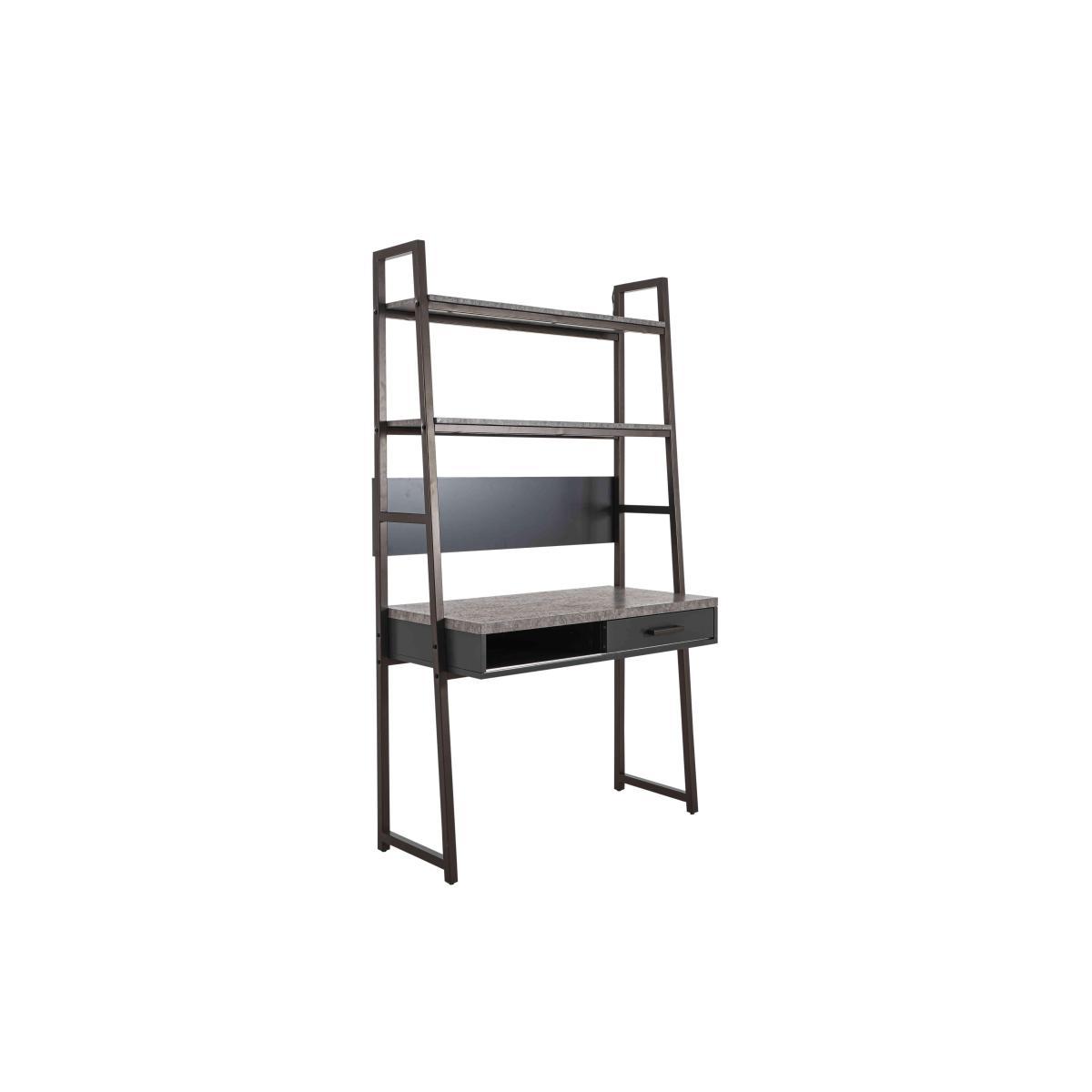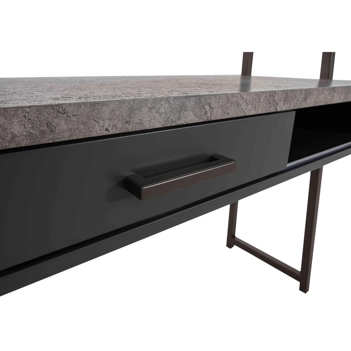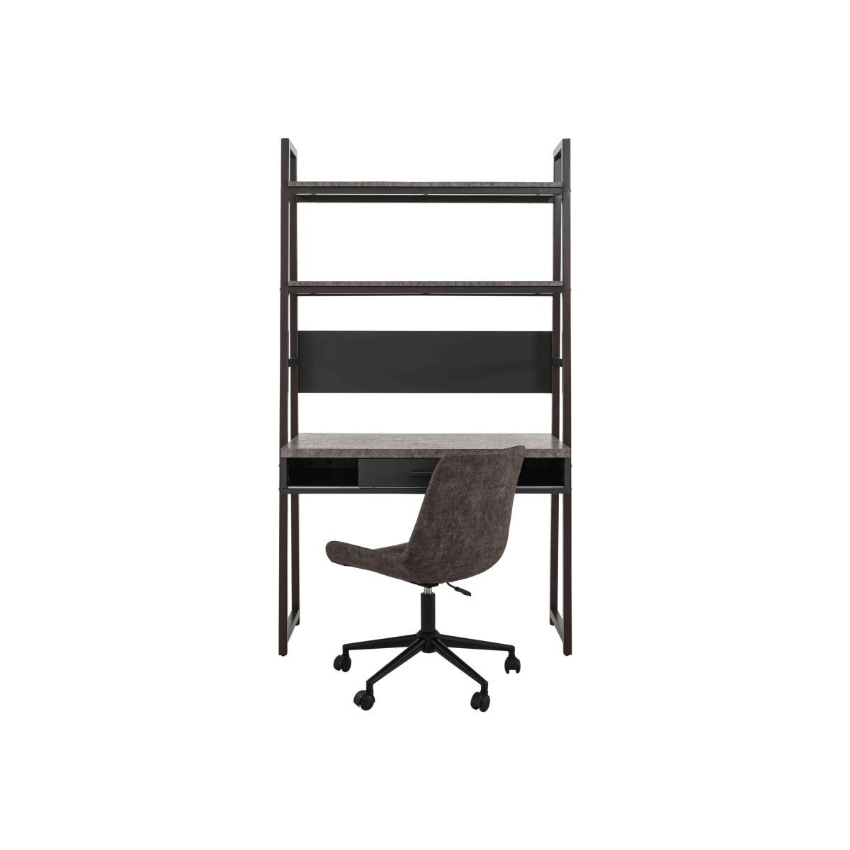 Make space for this fabulous wall desk and chair combo, although you won’t need too much as this home office setup is so very ergonomic. We love the chunky metal accents and concrete-effect desk top. Modern industrial wall desk saves space and looks great. Contemporary home office style with concrete-effect top. Chunky grey metal frame and accents. Ergonomic and functional combination of desk, shelves, alcoves and drawer. Narrow profile and small footprint — an ideal choice for compact spaces. Desk chair is height adjustable, swivels and set on casters. Curved seat and back upholstered in grey faux leather. Upholstery has a quilted-effect pattern. Designed and crafted with care. What you need to know. 2 deep shelves for books. Desk has 1 drawer and 2 alcoves. Please note that the surface is not heat-resistant. Use coasters and placements and avoid abrasive cleaning products. Part of the Moon Office collection of desks and home office storage. WARNING!. Furniture can tip over unexpectedly and cause injury. This item should be fixed to a wall using the anti-tip kit provided with the furniture. Be sure to use the correct wall fixings suitable for the walls in your home.