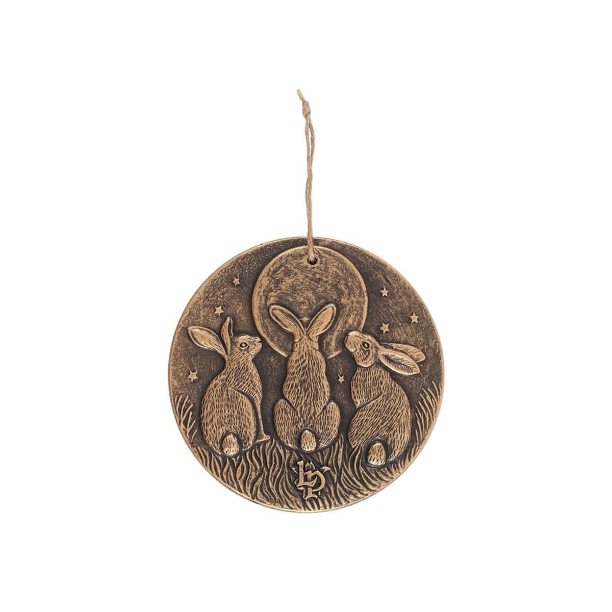Moonlit Hares Terracotta Wall Plaque - Gold