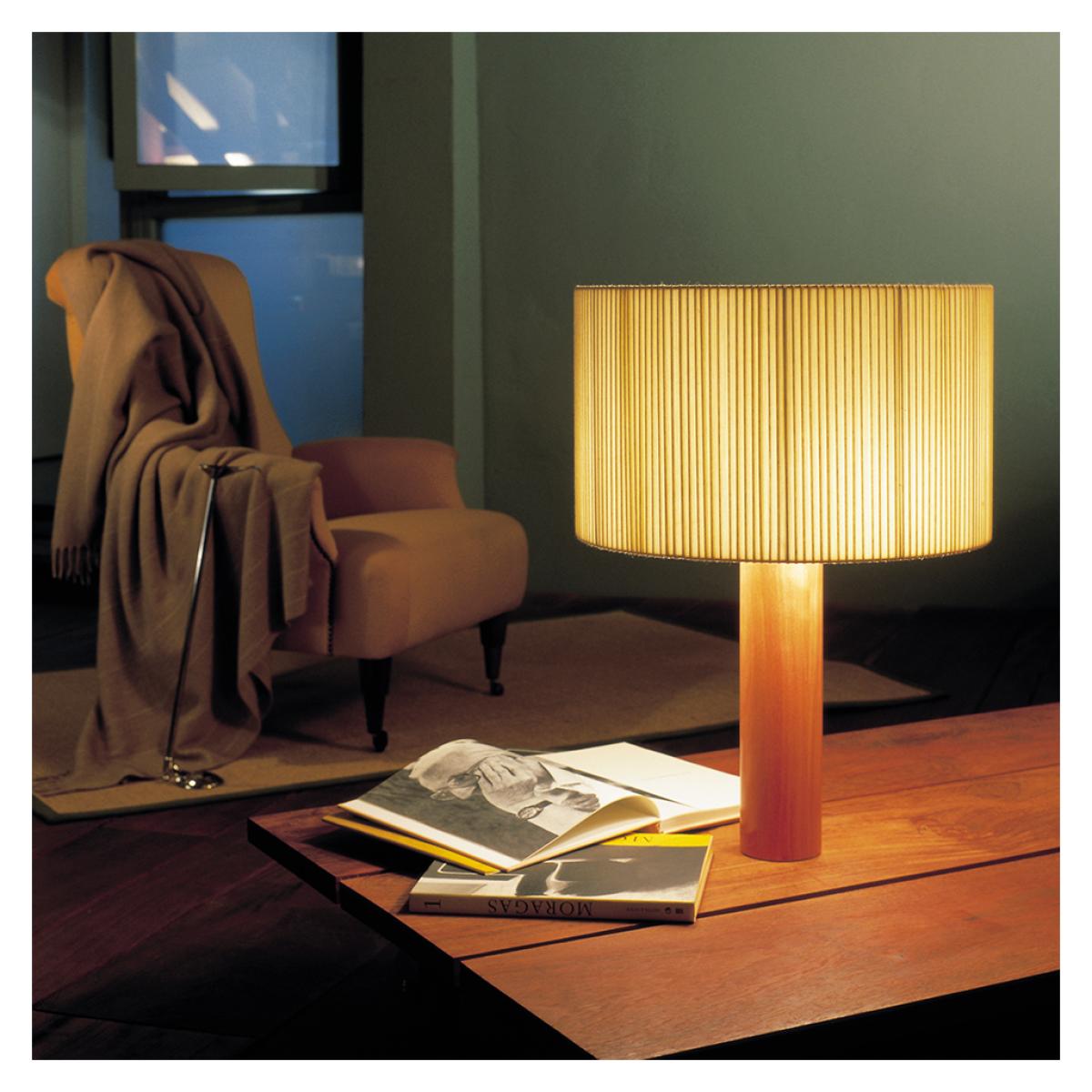 Formed of a solid Sapele wood cylinder that holds a substantial circular shade aloft, the Moragas Table Light's white cotton concertina ribbon shade with a silk border is traditionally used for bookbinding and creates a beautiful texture when light shines out from within. At age forty-four, architect and chairman of the Industrial Design Association Antoni de Moragas Gallisà designed this lamp to use in his personal office space, and allegedly would place notes and cards marking the visits he received between the folds in the ribbon shade. The Moragas Table Light's three bulbs ensure a well-distributed source of light, warmed by the white cotton of the shade to create a bright yet calming emanation, and would enhance any corner of your space with its timeless blend of materials and useful form. Requires: 3 x Max 8W E14 bulbs