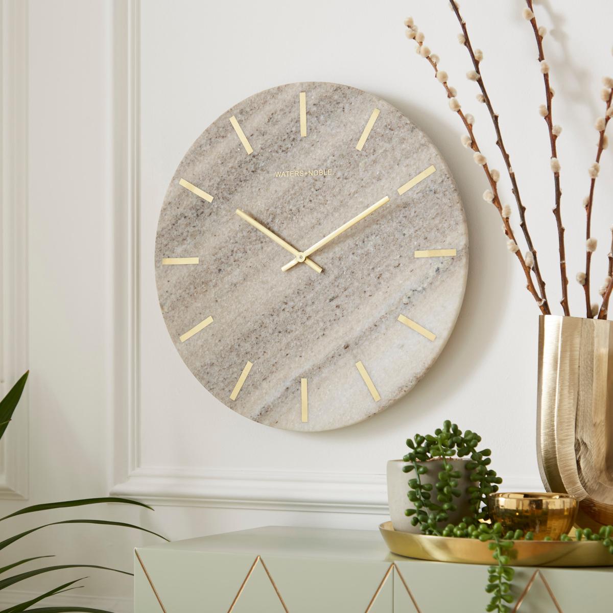 I love this marble wall clock because of its sleek, understated design and versatile colour palette. It works particularly well in minimalist, contemporary, or Scandinavian interiors, adding a touch of natural elegance without overwhelming the space. When styling, consider pairing it with neutral tones or light woods to enhance its subtle grey marbling, and hang it at eye level in living rooms or kitchens for both function and style. For practical tips, place it where it can be easily viewed from main seating areas or workspaces to keep your room feeling cohesive and functional. Its neutral hue makes it adaptable, ensuring it blends seamlessly into a range of colour schemes and décor styles.