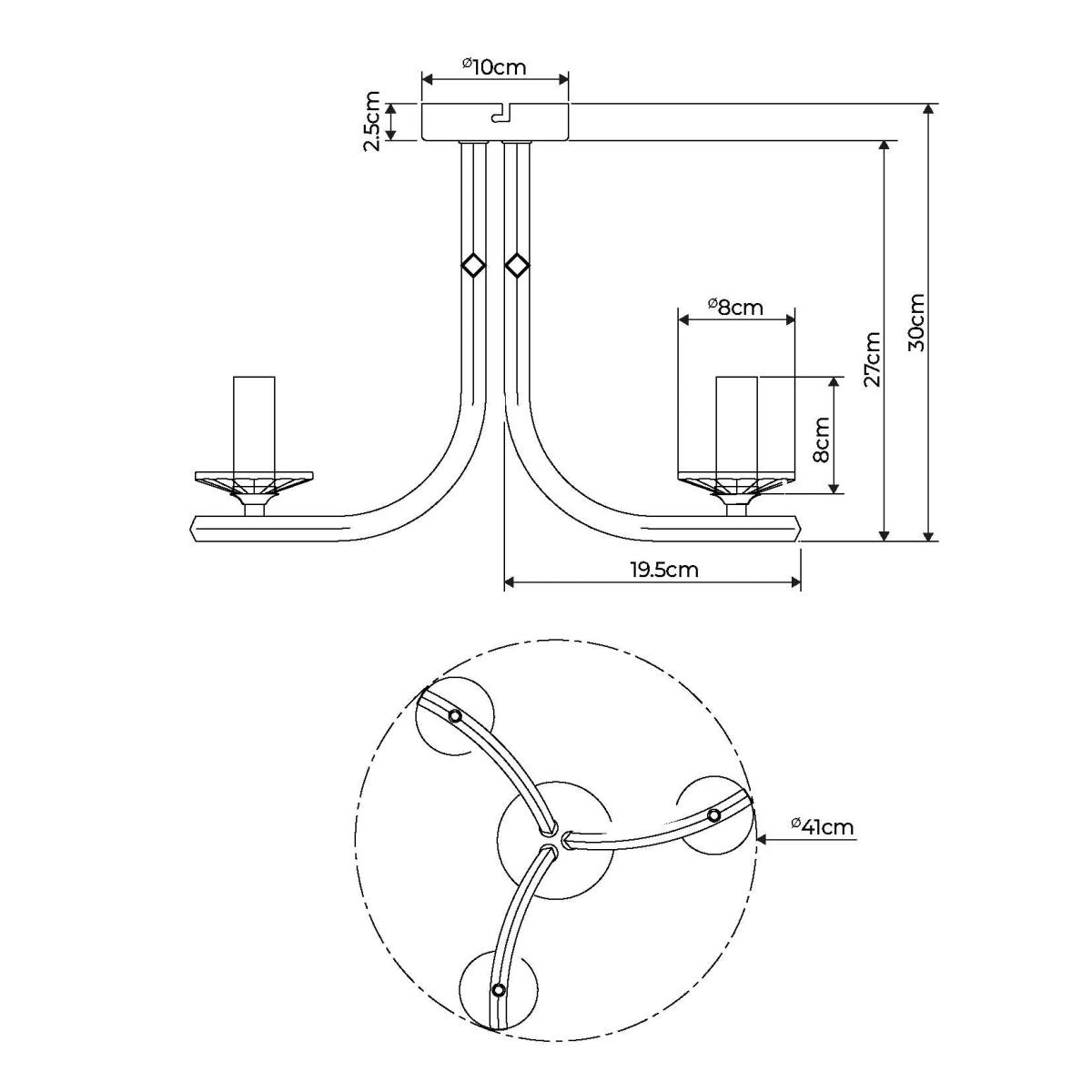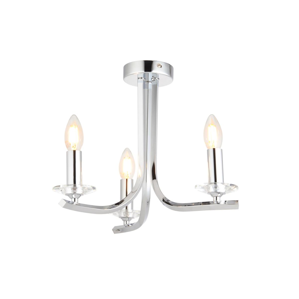 Add a touch of style and sophistication to your home with this chic 3-armed semi-flush chandelier that features a polished chrome effect frame and clear crystal detailing. Add a touch of style and sophistication to your home with this chic 3-armed semi-flush chandelier that features a polished chrome effect frame and clear crystal detailing.