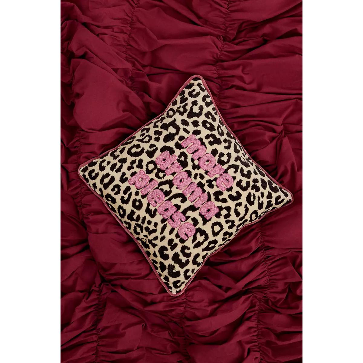 Statement leopard print cushion with dramatic flair. Crafted from cotton with a soft filling, complete with a textured pink 'more drama please' slogan and pink piping on the trim. **Content + Care** \- Outer: 100% Cotton \- Filling 100% Polyester \- Spot clean **Size** \- 45cm x 45cm