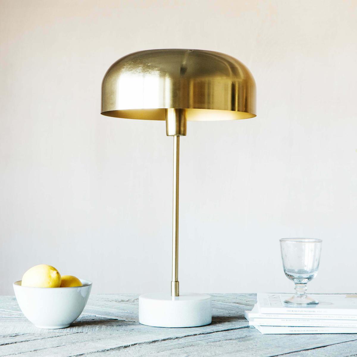 I love this table lamp for its sleek, modern appeal and striking brass finish, which instantly adds a touch of sophistication to any space. It works exceptionally well in contemporary or minimalist interiors, but can also bring a luxe feel to eclectic or vintage settings when paired with complementary textures. For styling, try placing it on a side table or console alongside neutral-toned accessories to highlight its metallic shine, or mix it with marble or wood accents for a balanced, layered look. Its compact size makes it versatile for both bedside and living room setups, providing functional lighting while also serving as a statement piece.