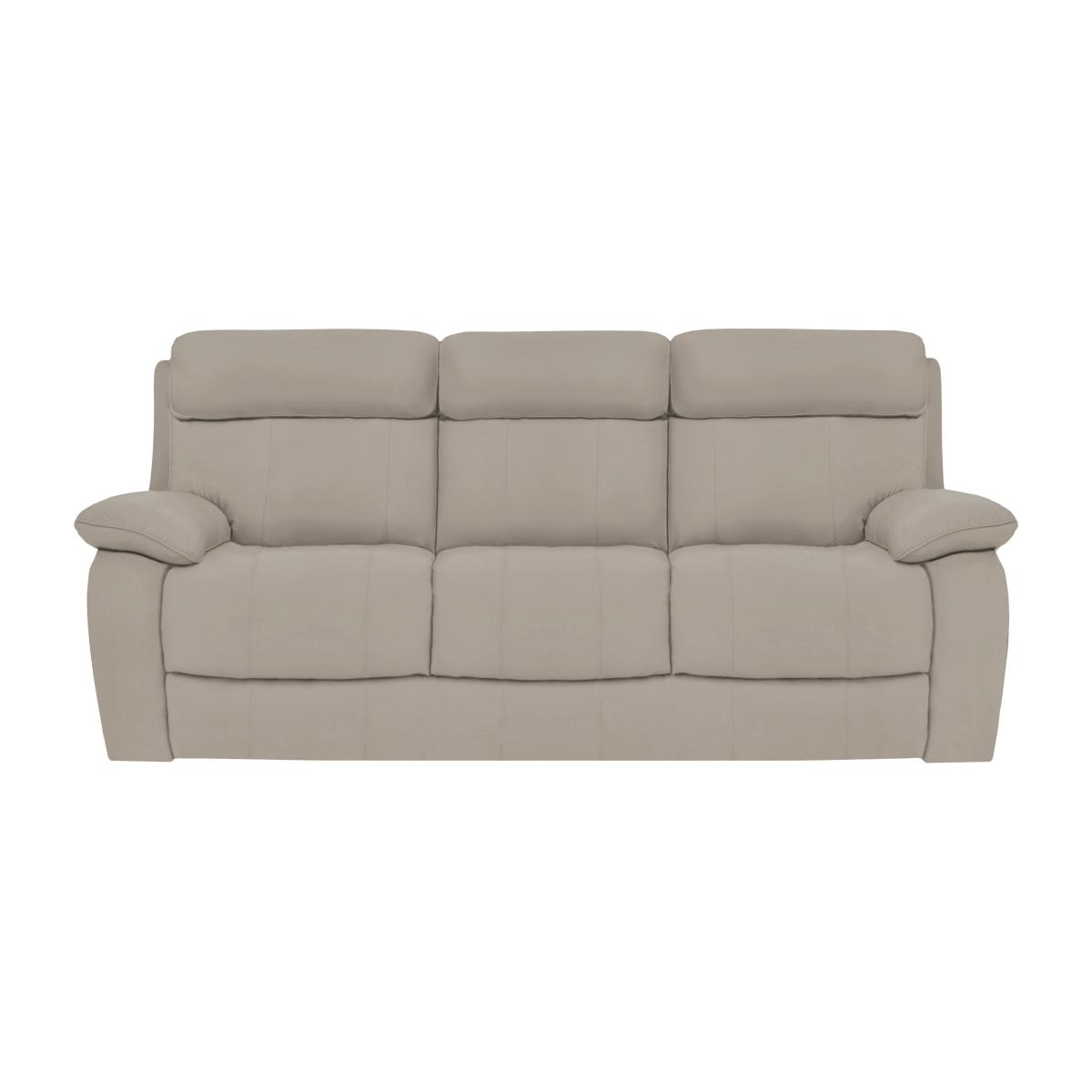 Great style is now available at a fantastic price with the stylishly modern Moreno. This amazingly comfortable, luxurious range is upholstered in either 100% premium leather or soft to the touch woven fabric. Stitched back detailing ensures the lumbar comfort sits perfectly at the base of your back. You also have the choice of space saving 'wall away' manual reclining actions or power reclining at the push of a button. Enjoy the support and comfort of higher density foam interiors, no-sag spring suspension and stronger frames. There’s plenty of room to relax on this three-seater leather sofa, and plenty of comfort features to enjoy like cushioned headrests and lumbar support. Also available with power or manual recliners. Why you'll love it Modern designer style, amazing comfort, incredible price. High-back and lumbar support plus cushioned headrests for relaxation – guaranteed. You can even add recliners for precise and personalised comfort. Choose smooth power recliners or space-saving wall-away manual recliners. The power recliner version of this sofa also comes with USB device charging. In beautifully soft 100% leather upholstery with stylish stitching. Huge choice of colours. Only at Furniture Village. This 3-seater leather sofa is part of our World of Leather Moreno range. What you need to know Medium comfort level. Seat suspension: no-sag springs. Seat cushioning: higher density foam with fibre. Back support: spring. Back cushioning: fibre. Arm cushioning: fibre. To maintain cushion fullness, be sure to plump head, lumbar and arm areas daily. USB charging is available only with the power recliner version of this sofa. Please allow time for new recliners to ease. Minor gaps are necessary to ensure ease of recliner motion and may be exaggerated depending on floor type. Leather has unique marks and characteristics with variation in colour and texture. Leather softens with use. Smoothing the tops of leather cushions prevents signs of visual comfort. Deal with any spills promptly. Professional cleaning advised for oil- and grease-based stains. Please read our upholstery care guide for more advice.