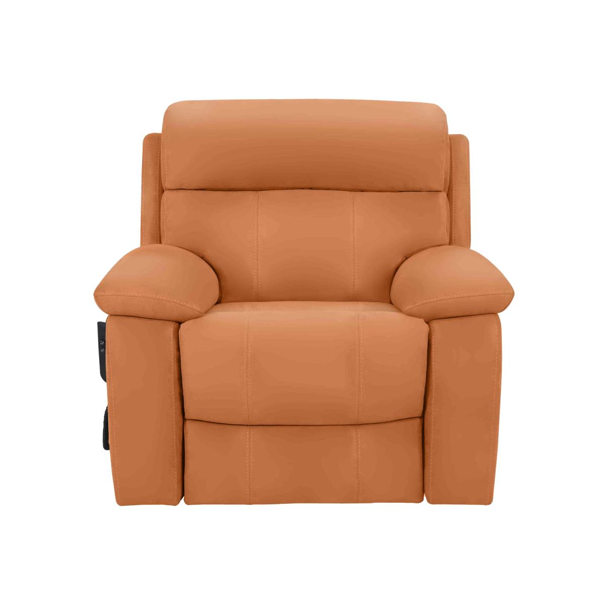 Great style is now available at a fantastic price with the stylishly modern Moreno. This amazingly comfortable, luxurious range is upholstered in either 100% premium leather or soft to the touch woven fabric. Stitched back detailing ensures the lumbar comfort sits perfectly at the base of your back. You also have the choice of space saving 'wall away' manual reclining actions or power reclining at the push of a button. Enjoy the support and comfort of higher density foam interiors, no-sag spring suspension and stronger frames. This stylish leather armchair is also a power lift and rise chair that makes sitting, standing and reclining easier and more comfortable. Beautiful 100% leather upholstery in a choice of colours. Why you'll love it Modern designer style, amazing comfort, incredible price. This riser recliner makes sitting, standing and reclining almost effortless. Smooth power mechanism and an easy to use remote control. High-back and lumbar support plus cushioned headrest for relaxation – guaranteed. In beautifully soft 100% leather upholstery with stylish stitching. Huge choice of colours. Only at Furniture Village. This leather lift and rise is part of our World of Leather Moreno range. What you need to know Medium comfort level. Seat suspension: no-sag springs. Seat cushioning: higher density foam with fibre. Back support: spring. Back cushioning: fibre. Arm cushioning: fibre. To maintain cushion fullness, be sure to plump head, lumbar and arm areas daily. Please allow time for new recliners to ease. Minor gaps are necessary to ensure ease of recliner motion and may be exaggerated depending on floor type. Leather has unique marks and characteristics with variation in colour and texture. Leather softens with use. Smoothing the tops of leather cushions prevents signs of visual comfort. Deal with any spills promptly. Professional cleaning advised for oil- and grease-based stains. Please read our upholstery care guide for more advice.