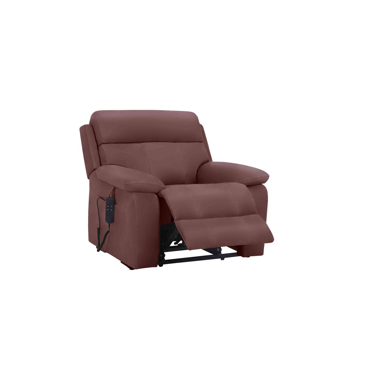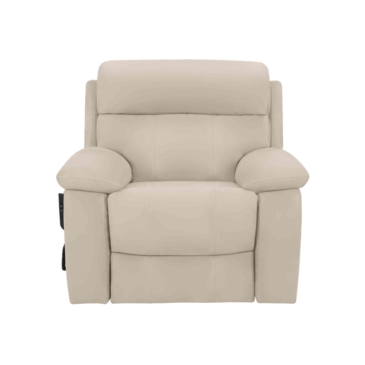 Great style is now available at a fantastic price with the stylishly modern Moreno. This amazingly comfortable, luxurious range is upholstered in either 100% premium leather or soft to the touch woven fabric. Stitched back detailing ensures the lumbar comfort sits perfectly at the base of your back. You also have the choice of space saving 'wall away' manual reclining actions or power reclining at the push of a button. Enjoy the support and comfort of higher density foam interiors, no-sag spring suspension and stronger frames. This stylish leather armchair is also a power lift and rise chair that makes sitting, standing and reclining easier and more comfortable. Beautiful 100% leather upholstery in a choice of colours. Why you'll love it Modern designer style, amazing comfort, incredible price. This riser recliner makes sitting, standing and reclining almost effortless. Smooth power mechanism and an easy to use remote control. High-back and lumbar support plus cushioned headrest for relaxation – guaranteed. In beautifully soft 100% leather upholstery with stylish stitching. Huge choice of colours. Only at Furniture Village. This leather lift and rise is part of our World of Leather Moreno range. What you need to know Medium comfort level. Seat suspension: no-sag springs. Seat cushioning: higher density foam with fibre. Back support: spring. Back cushioning: fibre. Arm cushioning: fibre. To maintain cushion fullness, be sure to plump head, lumbar and arm areas daily. Please allow time for new recliners to ease. Minor gaps are necessary to ensure ease of recliner motion and may be exaggerated depending on floor type. Leather has unique marks and characteristics with variation in colour and texture. Leather softens with use. Smoothing the tops of leather cushions prevents signs of visual comfort. Deal with any spills promptly. Professional cleaning advised for oil- and grease-based stains. Please read our upholstery care guide for more advice.