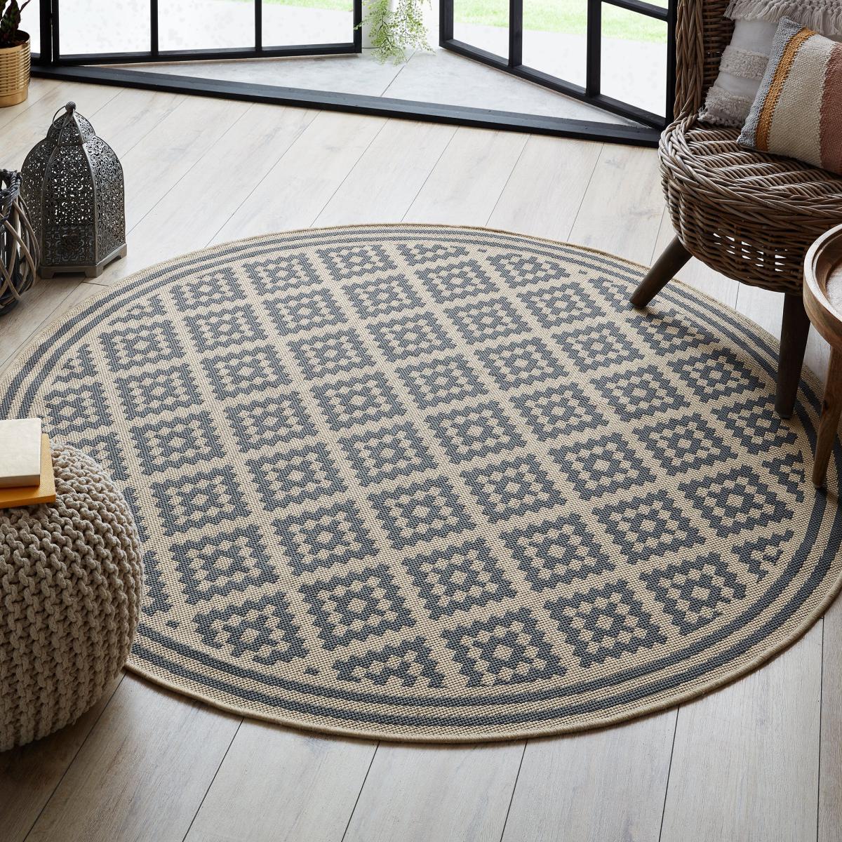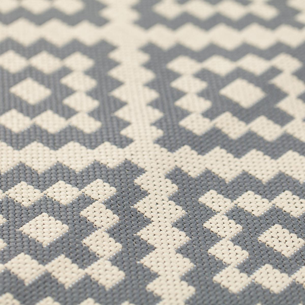 Versatile and on-trend, the Moretti range has the advantage of being suitable for both indoor and outdoor living. Designed in a contemporary and eye-catching pattern in a range of sizes, the Moretti rug has been machine manufactured in Turkey, making this collection extremely durable and prepared to tackle different weather types. Constructed in a flatwoven form, these rugs are extra easy to care for and would look great situated in a range of indoor and outdoor spaces. Don’t forget to buy our anti-slip mat. Here. , available in a choice of sizes. This is a hard-wearing machine-made rug. When opening, re-roll your rug pile out and leave in a warm room for 24 hours before putting in place, this will help to reduce wrinkles and curling from packing. A small amount of fibre loss is normal on a new rug. Do not pull any loose threads, please cut them carefully with scissors to remove. Avoid prolonged exposure to direct sunlight as this may cause fading of the colour. Turn your rug regularly to ensure even wear and reduce pressure marks from furniture. Please note this product has been UV treated to prevent fading. Before using any cleaning products on your rug, test on an inconspicuous area first to ensure it does not affect the colour. Clean spills immediately by blotting with a clean dry white cloth - do not rub as this may stain the fibres. Vacuum your rug regularly to remove everyday dirt, we recommend the use of a suction type vacuum cleaner as a rotating vacuum brush can cause damage to the pile surface. We recommend the use of an anti-slip mat beneath your rug to prevent it from slipping and sliding out of place. Latex is used on the back of this rug. Please do not leave babies or young children unsupervised on this rug.