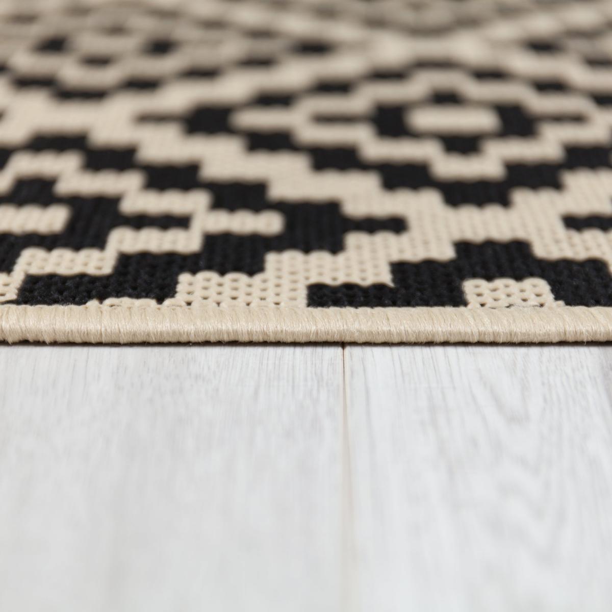 Versatile and on-trend, the Moretti range has the advantage of being suitable for both indoor and outdoor living. Designed in a contemporary and eye-catching pattern in a range of sizes, the Moretti rug has been machine manufactured in Turkey, making this collection extremely durable and prepared to tackle different weather types. Constructed in a flatwoven form, these rugs are extra easy to care for and would look great situated in a range of indoor and outdoor spaces. Don’t forget to buy our anti-slip mat. Here. , available in a choice of sizes. This is a hard-wearing machine-made rug. When opening, re-roll your rug pile out and leave in a warm room for 24 hours before putting in place, this will help to reduce wrinkles and curling from packing. A small amount of fibre loss is normal on a new rug. Do not pull any loose threads, please cut them carefully with scissors to remove. Avoid prolonged exposure to direct sunlight as this may cause fading of the colour. Turn your rug regularly to ensure even wear and reduce pressure marks from furniture. Please note this product has been UV treated to prevent fading. Before using any cleaning products on your rug, test on an inconspicuous area first to ensure it does not affect the colour. Clean spills immediately by blotting with a clean dry white cloth - do not rub as this may stain the fibres. Vacuum your rug regularly to remove everyday dirt, we recommend the use of a suction type vacuum cleaner as a rotating vacuum brush can cause damage to the pile surface. We recommend the use of an anti-slip mat beneath your rug to prevent it from slipping and sliding out of place. Latex is used on the back of this rug. Please do not leave babies or young children unsupervised on this rug.
