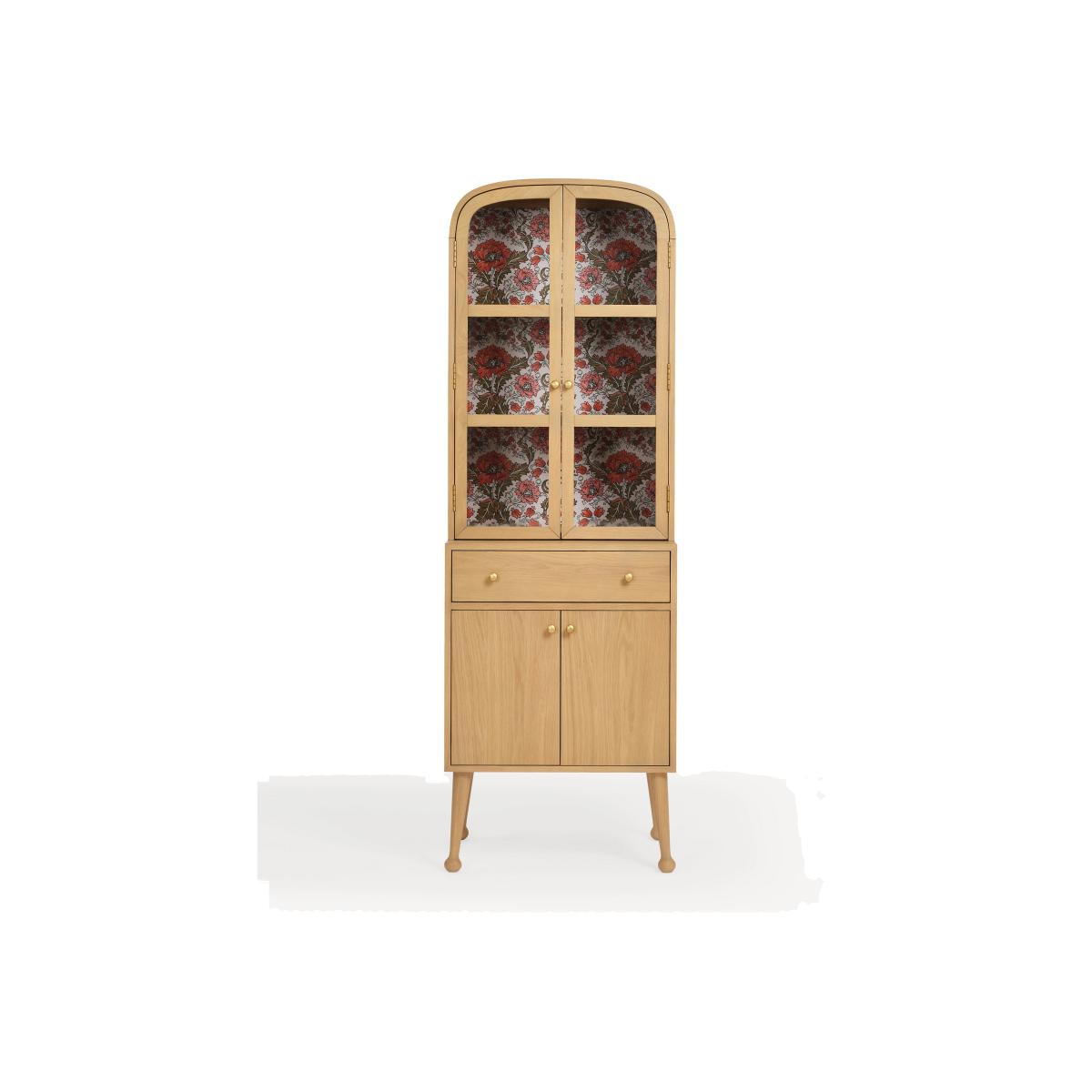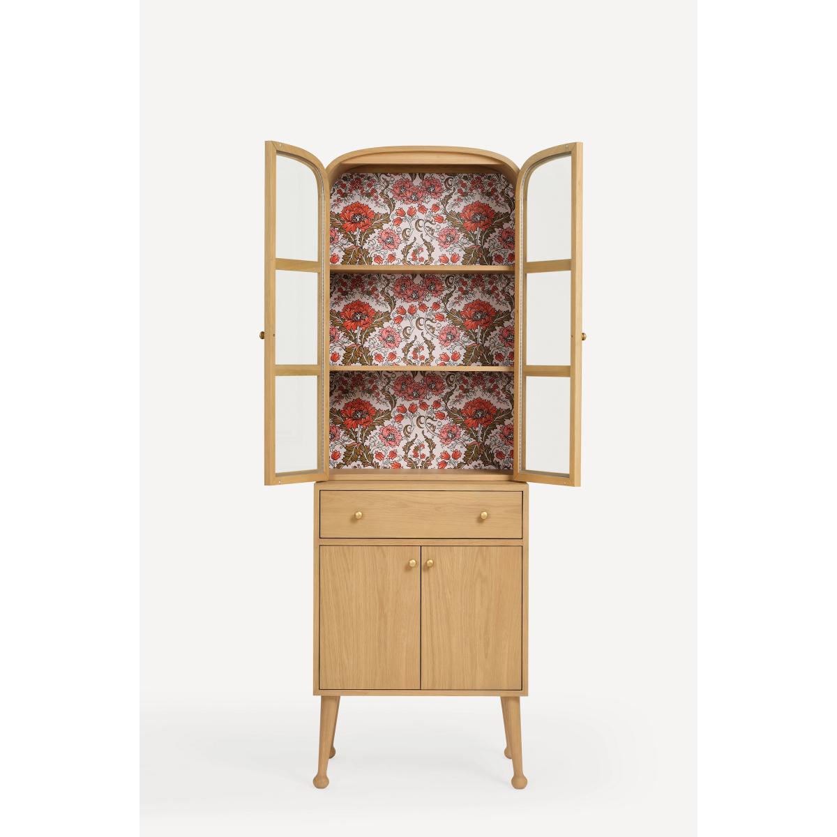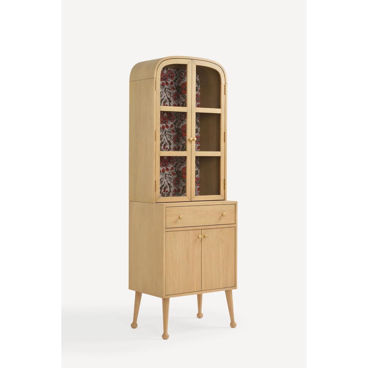 Tall, stately structures characterize the Moretti Collection, which features transparent glass doors and slender, tapered legs with rounded feet, making it a must-have for all your dining storage needs. For ordering assistance and more, please [contact us](https://www.anthropologie.com/help/contact-us#contact-us-section-2). For aesthetic advice and tips to help decorate your space, enjoy our complimentary [home styling services](https://www.anthropologie.com/help/personal-styling-home-decor). * Oak wood bar cabinet reinforced with engineered hardwood and an oak veneer finish * Aluminum hardware * One drawer, three shelves, and two cabinets * Wipe clean with soft cloth. Avoid chemical cleaners * Easily assembled upon delivery * Imported