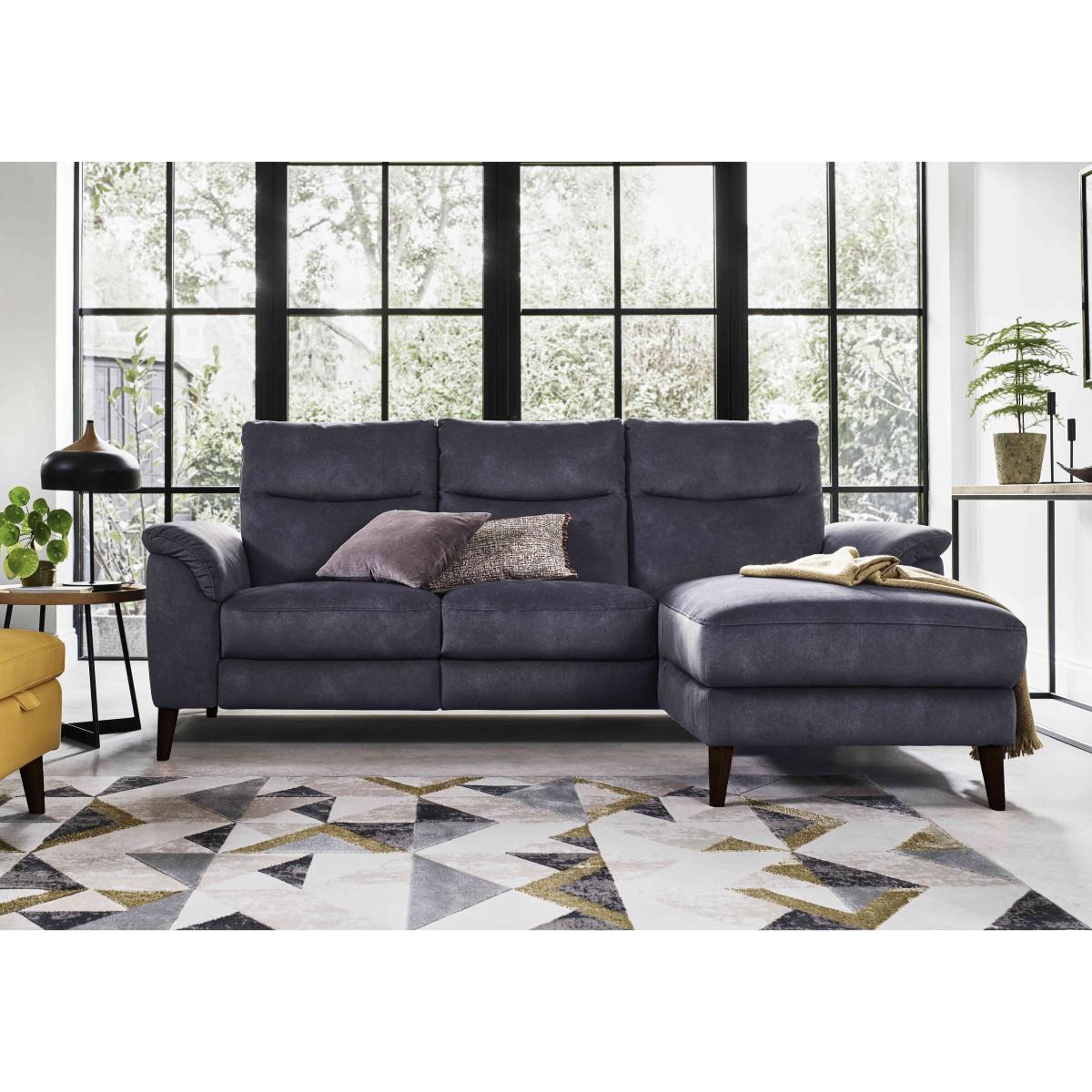 Meet Morgan, where style and comfort meet value – and all in a usefully compact design that’s perfect for smaller homes and apartment living. Channelling a mid-century design aesthetic, this thoughtfully-curated range of handcrafted sofas, chaise end sofas and armchairs offers a slew of comfort features including optional power recliners, pocket sprung seats and superb cushioning. And pieces look every bit as good as they feel. Choose 100% leather or high-quality fabric upholstery in a range of on-trend colours picked to coordinate beautifully with the polished espresso legs. Designed to fit and priced to please, the Morgan range is only available at Furniture Village. Stock: 9103BJ1250. 1 Please note: this clearance item has limited stock and is subject to availability. Great value, on-trend style, the perfect size for modern rooms, this fabulous 3-seater sofa is just what you’re looking for. Why you'll love it This 3-seater fabric sofa with chaise end makes relaxing so easy. Compact mid-century design at a great-value price. Built for real comfort with pocket sprung seats and cushioned arms. High-quality fabric upholstery. Tapered legs in polished espresso. Available with the chaise end on the right-hand side. Available without recliners. Handmade exclusively for Furniture Village. This 3-seater fabric sofa with chaise end is part of the Morgan range. What you need to know Medium comfort level. Seat suspension: sinuous spring. Seat cushioning: pocket spring, foam and fibre. Seat cushions are fixed. Back suspension: webbing. Back cushioning: fibre. Back cushions are fixed. Feet are removable. Please allow time for the recliner mechanism to ease. Minor gaps are necessary to ensure ease of motion and may be exaggerated depending on floor type. Please note that the chaise end side of this sofa does not recline. Some fabrics can show wear on areas of more use or in direct sunlight. Fixed seat and back cushions require smoothing and straightening regularly. To smooth and straighten fixed cushions, punch the back cushion’s top two corners and the seat cushion’s outer two corners, and pinch outwards. Please read our upholstery care guide for more advice. For ease of access to your home, this chaise end sofa will be delivered in two pieces.