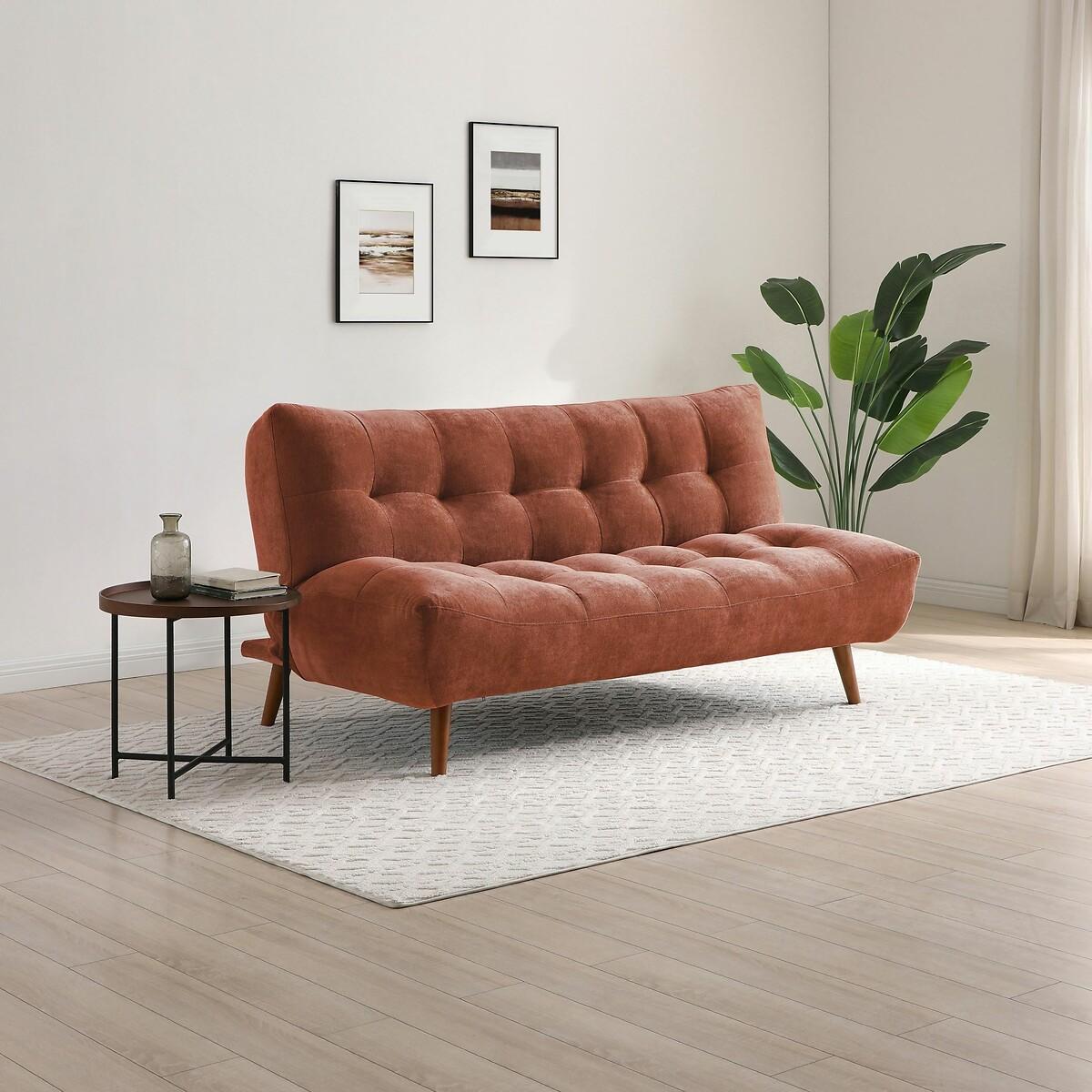 Meet Morgan - the armless 3-seater click clack sofa bed is proof that practical can still look polished. The simple click-clack back folds down in seconds, transforming it from a modern sofa into a comfortable guest bed--perfect for smaller spaces or multi-functional rooms. An armless design creates more room for sleeping and creates a sleek look. Upholstered in muted tones of soft chenille for a for an understated look with a touch-me texture, and finished with deep tufting and elegant tapered wooden legs, it brings a contemporary scandinavian-inspired edge to any setup. Whether it's in your living room, spare room, or home office, this versatile piece is a smart pick for anyone searching for stylish yet functional something. Product details• Upholstered in chenille fabric• Sleeps 2• Comfort level: Soft• Partial assembly required (legs/feet only)• Wipe clean with a soft cloth• 12 months manufacturers warranty. Product Composition - Fabric - 100% Polyester. Seat Filling - Foam & Polyester Fibre. Back Filling - Foam & Polyester Fibre. Product Dimensions - 184 cm x 100 cm x 93 cm , Weight 41.63 KGSeat Height: 52.5 cm. Back Height: 49 cm. Seat Width between arms: 183.5 cm. Seat Depth: 55.5 cm Clearance to floor: 20 cm. Sleeping Area: 222 cm Package Dimensions - 188 cm x 122 cm x 32 cm, Weight 48 KGThis product will be dispatched by one of our trusted suppliers. You’ll be contacted by their selected courier about your delivery. KYOTO01
