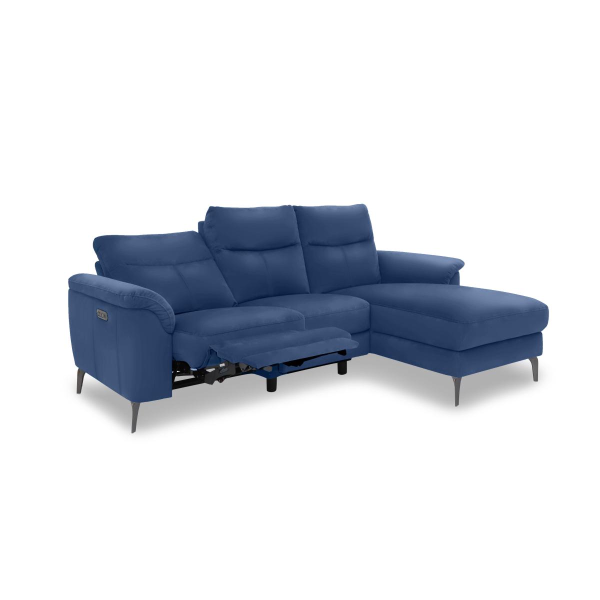 Meet Morgan, where style and comfort meet value – and all in a usefully compact design that’s perfect for smaller homes and apartment living. Channelling a mid-century design aesthetic, this thoughtfully curated range of handcrafted sofas, chaise end sofas and armchairs offers a slew of comfort features, including optional power recliners, pocket sprung seats and superb cushioning. And pieces look every bit as good as they feel. Choose 100% leather or high-quality fabric upholstery in a range of on-trend colours picked to coordinate beautifully with the modern metallic legs. Designed to fit and priced to please, the Morgan range is only available at Furniture Village. It may fall into our compact sofa category, but our Morgan three-seater chaise end sofa in 100% leather still has mid-century style and pocket sprung comfort in abundance. You can even add power recliners. Why you'll love it This 3-seater leather chaise end sofa brings style and comfort to a compact living space. On-trend mid-century design at a great-value price. Built for real comfort with pocket sprung seats and cushioned arms. Also available with power recliners that ease you to your perfect relaxed position. Power model has built-in USB device charging. Available with the chaise end on either the left- or right-hand side. Soft 100% leather upholstery in a choice of colours. Modern metallic tapered legs. Handmade exclusively for Furniture Village. This 3-seater leather chaise end sofa is part of the Morgan range. What you need to know Medium comfort level. Seat suspension: sinuous spring. Seat cushioning: pocket spring, foam and fibre. Cushioning is fixed. Back suspension: webbing. Back cushioning: fibre. Cushioning is fixed. Arm cushioning: foam and Dacron. Feet are removable. Please allow time for the recliner mechanism to ease. Minor gaps are necessary to ensure ease of motion and may be exaggerated depending on floor type. Please note that the chaise end side of this sofa does not recline. Fixed seat and back cushions require smoothing and straightening regularly. To smooth and straighten fixed cushions, punch the back cushion’s top two corners and the seat cushion’s outer two corners, and pinch outwards. Leather has unique marks and characteristics with variance in colour and texture. Leather softens with use. Smoothing the tops of leather cushions prevents signs of visual comfort. Please read our upholstery care guide for more advice. Item code: MORGRCHS40-003
