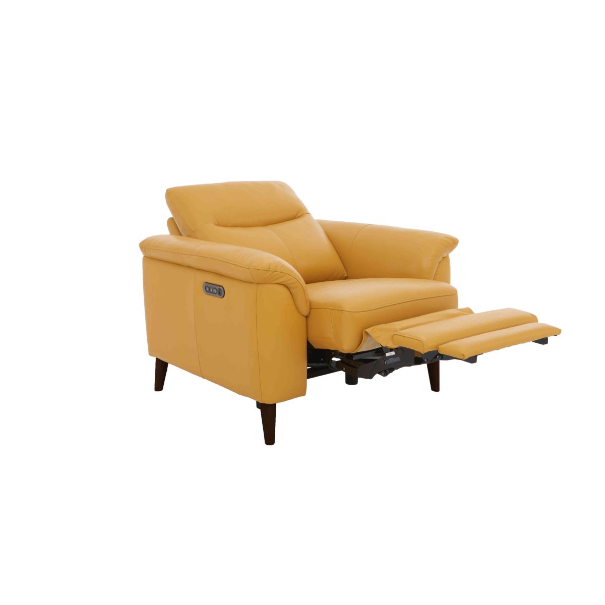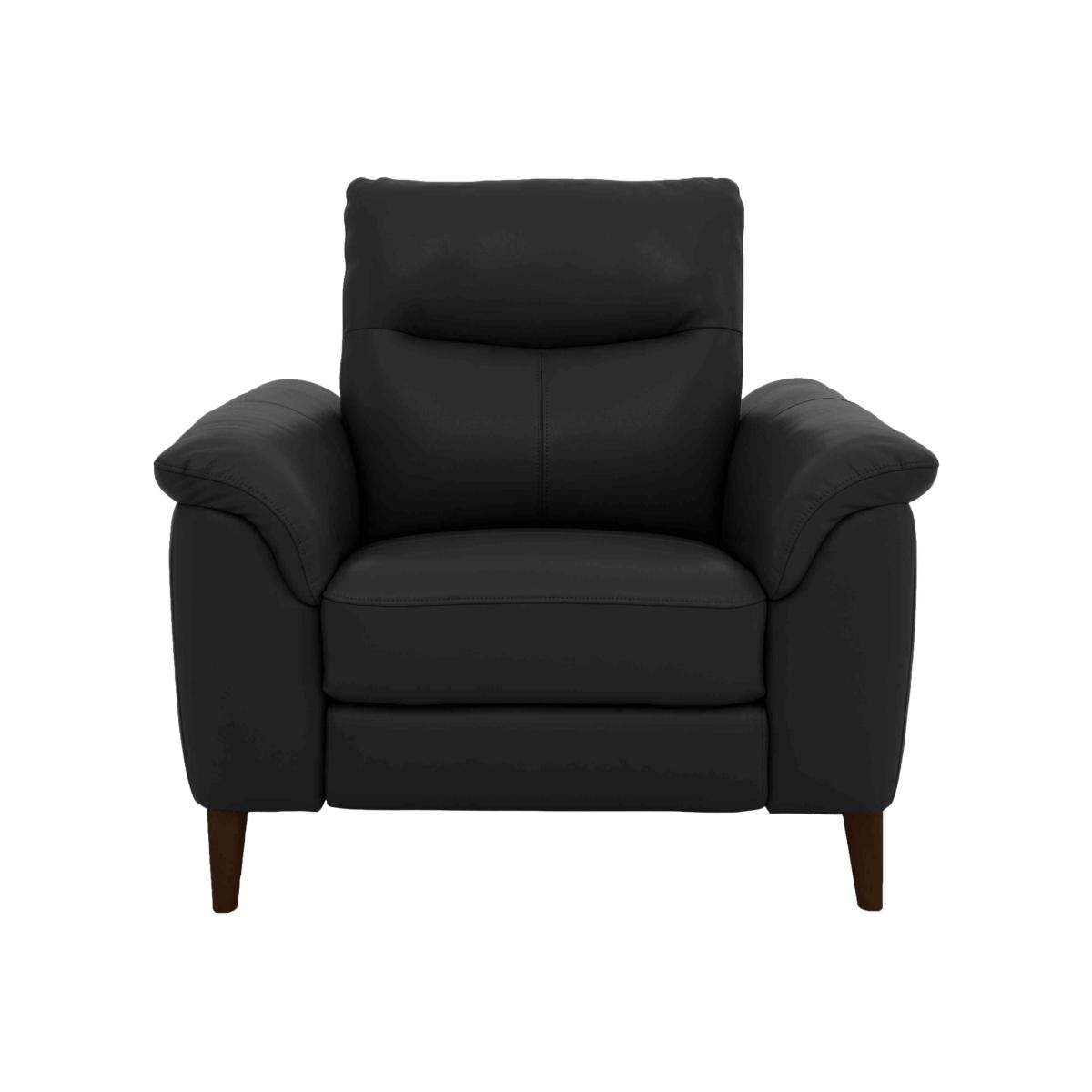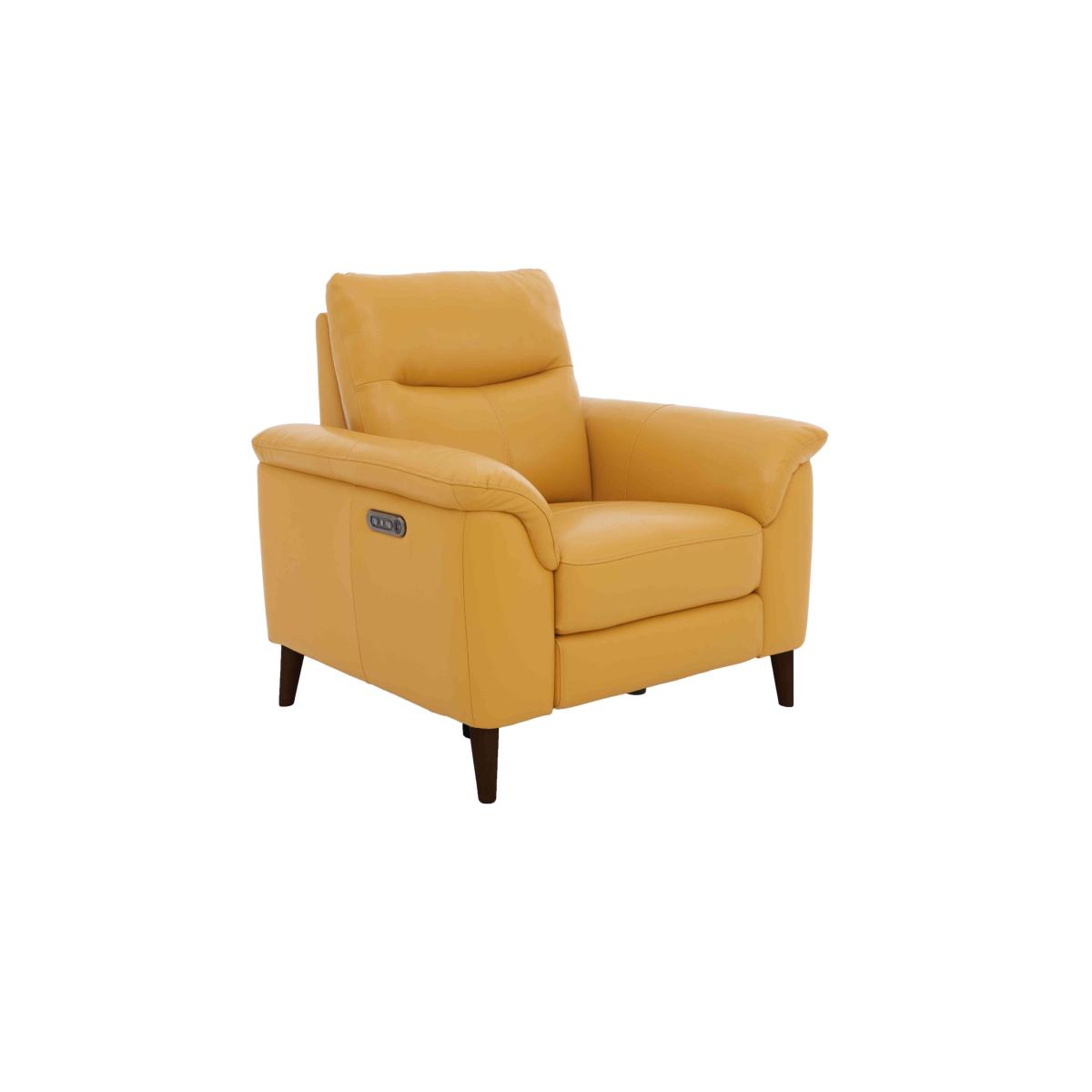 Meet Morgan, where style and comfort meet value – and all in a usefully compact design that’s perfect for smaller homes and apartment living. Channelling a mid-century design aesthetic, this thoughtfully-curated range of handcrafted sofas, chaise end sofas and armchairs offers a slew of comfort features including optional power recliners, pocket sprung seats and superb cushioning. And pieces look every bit as good as they feel. Choose 100% leather or high-quality fabric upholstery in a range of on-trend colours picked to coordinate beautifully with the polished espresso legs. Designed to fit and priced to please, the Morgan range is only available at Furniture Village. Looking for an armchair that you can call your own? Get dibs on this great-value leather power recliner chair, part of our Morgan range. Cool, comfy and ideal for more compact spaces. Why you'll love it You’ll love coming home to this leather power recliner armchair. Compact mid-century design at a great-value price. Built for real comfort with pocket sprung seat and cushioned arms. Smooth power recliner eases you to your perfect relaxed position. Soft 100% leather upholstery in a choice of colours. Tapered legs in polished espresso. Also available without the recliner. Handmade exclusively for Furniture Village. This leather power recliner armchair is part of the Morgan range. What you need to know Medium comfort level. Seat suspension: sinuous spring. Seat cushion is fixed. Seat cushioning: pocket spring, foam and fibre. Back suspension: webbing. Back cushioning: fibre. Back cushion is fixed. Feet are removable. Please allow time for the recliner mechanism to ease. Minor gaps are necessary to ensure ease of motion and may be exaggerated depending on floor type. Leather has unique marks and characteristics with variance in colour and texture. Leather softens with use. Smoothing the tops of leather cushions prevents signs of visual comfort. Fixed seat and back cushions require smoothing and straightening regularly. To smooth and straighten fixed cushions, punch the back cushion’s top two corners and the seat cushion’s outer two corners, and pinch outwards. Please read our upholstery care guide for more advice.